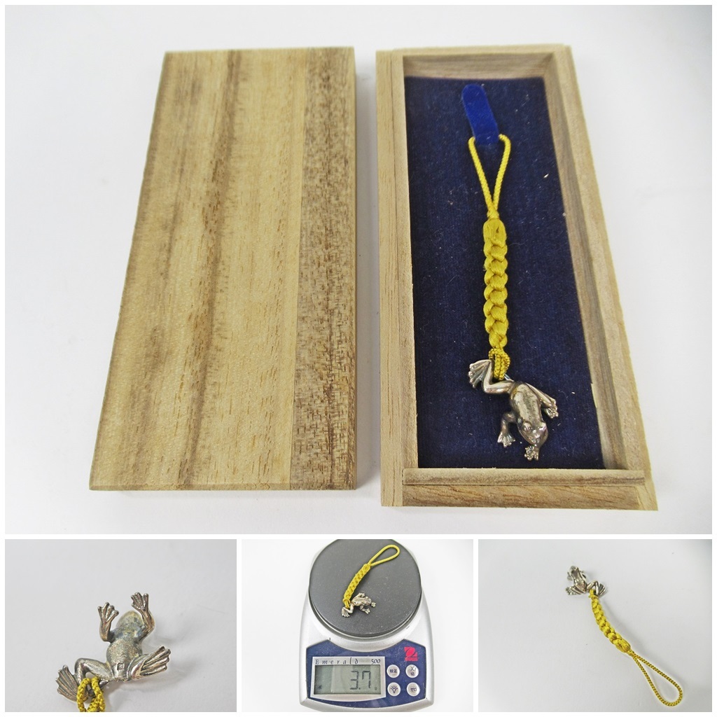 ★[A77]根付 銀製 蛙・かえる・カエル 銀製ジュエリー 重量約3.7g 木箱付き