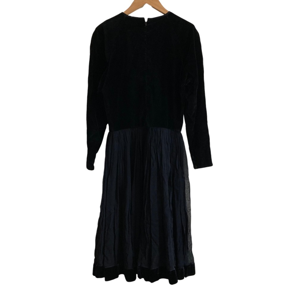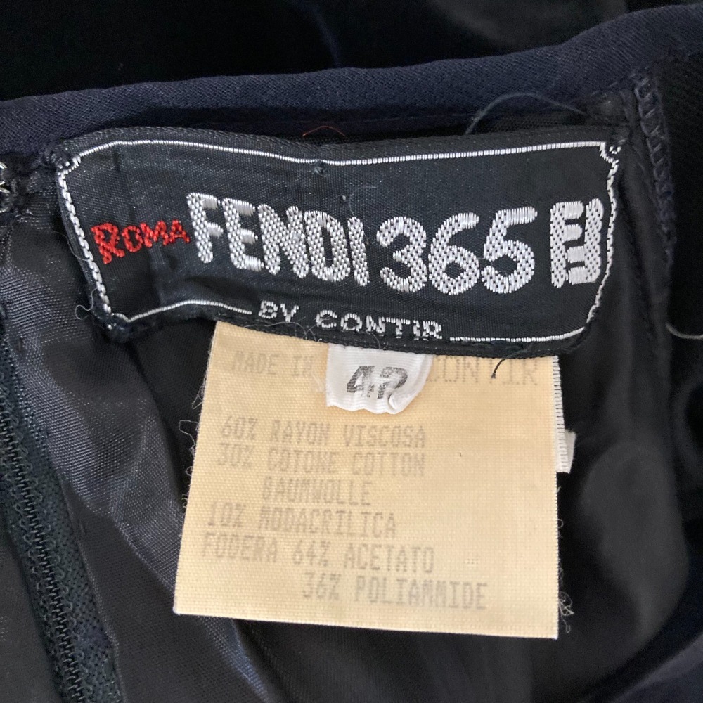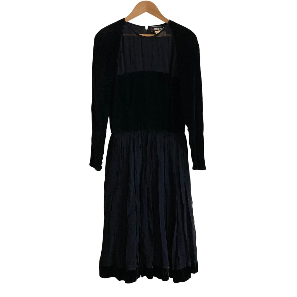 商品名:FENDI 365 by CONTIR フェンディ ヴィンテージ ベロアコンビ ドレス 長袖 ひざ丈 フレア ワンピース サイズ42 ブラック