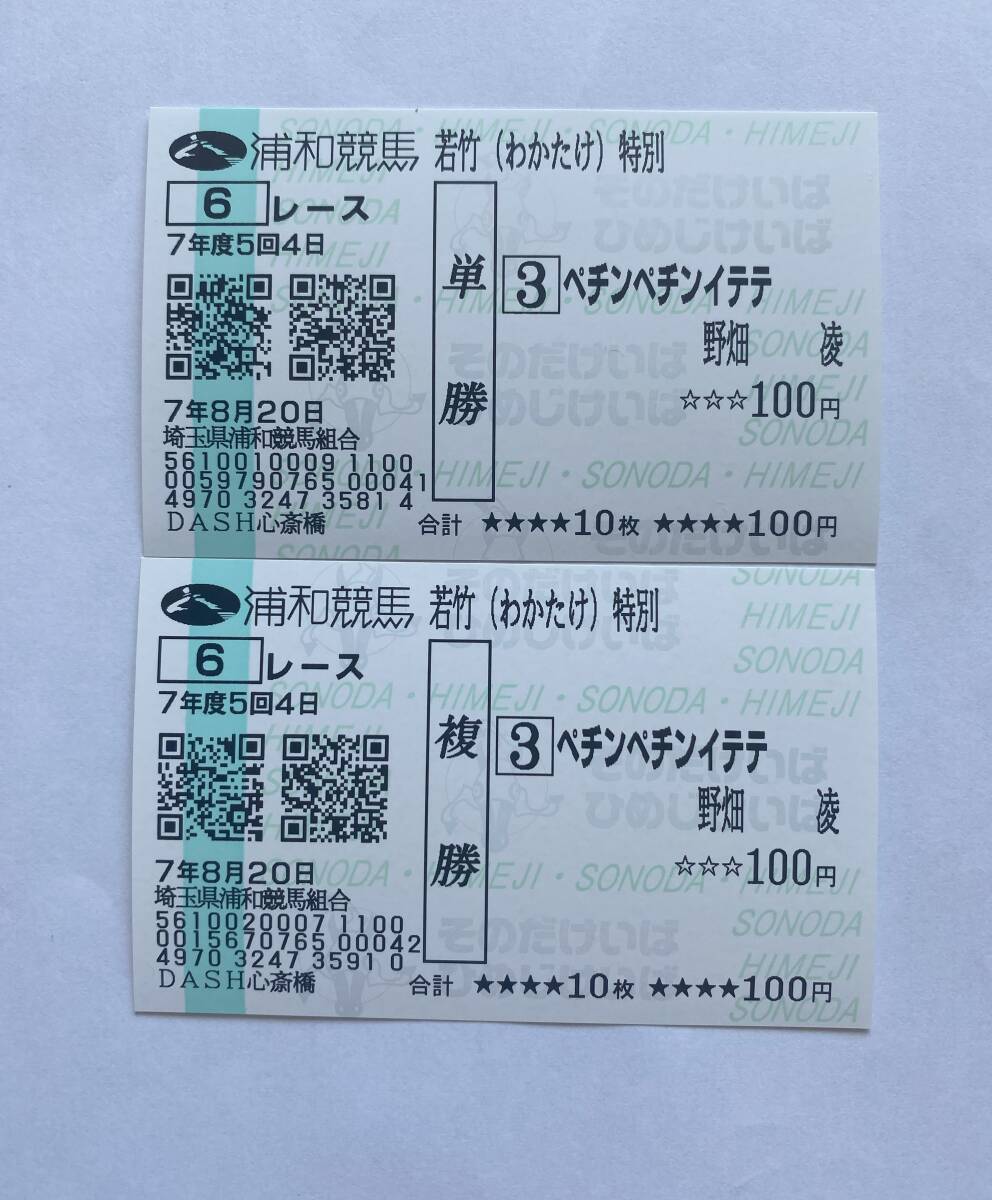 珍名馬券 ぺちんぺちん痛てて ペチンペチンイテテ 場外単勝・複勝2点セット