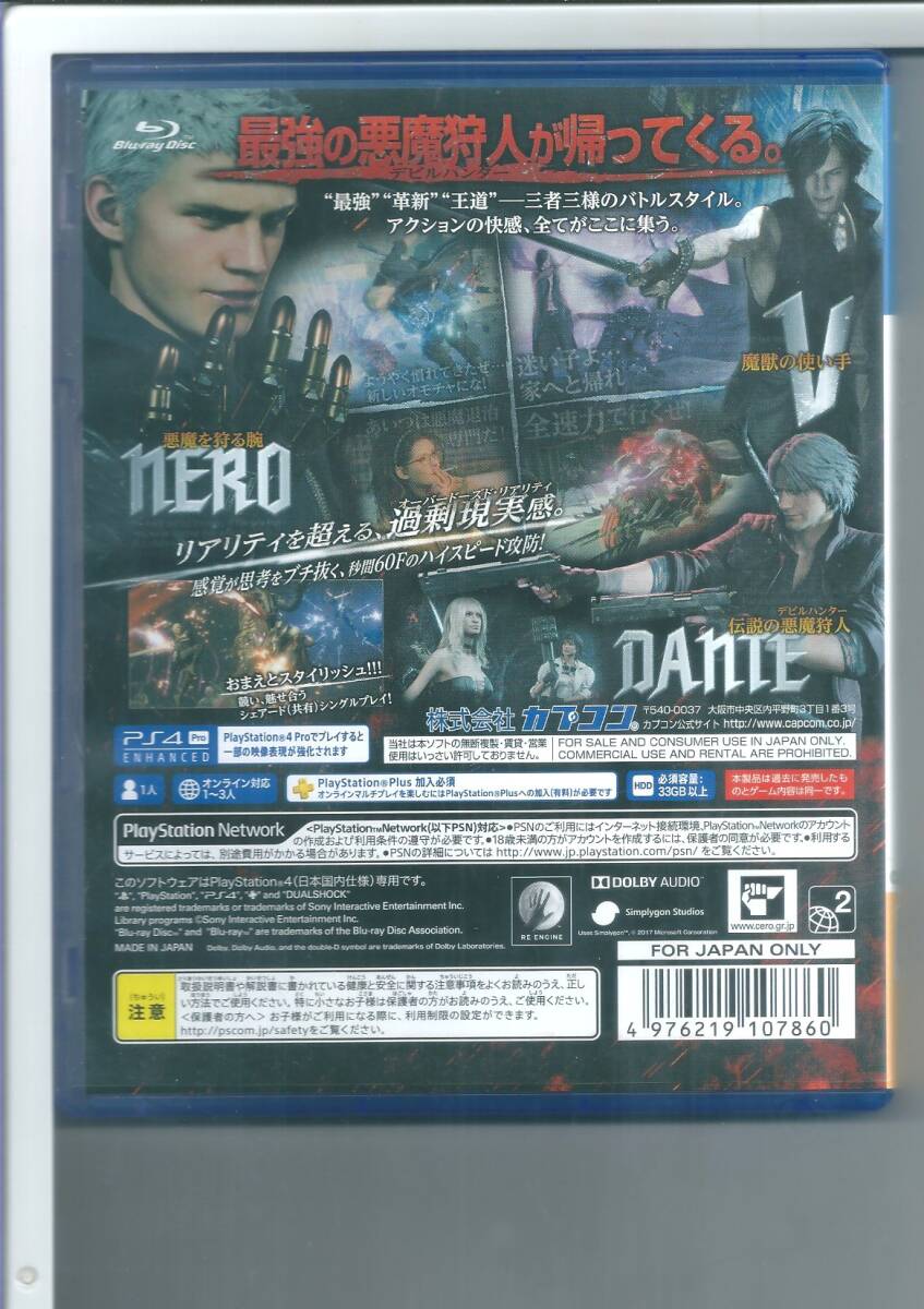 ●JANコード4976219107860 t2 ☆PS4 デビル メイ クライ5 Devil May Cry 5 Best Price ●商品の状態 ソフトは使用感少なく状態良好ですが説明シートに使用感、ケースにスレ・イタミ・ヤケがあります。 |
