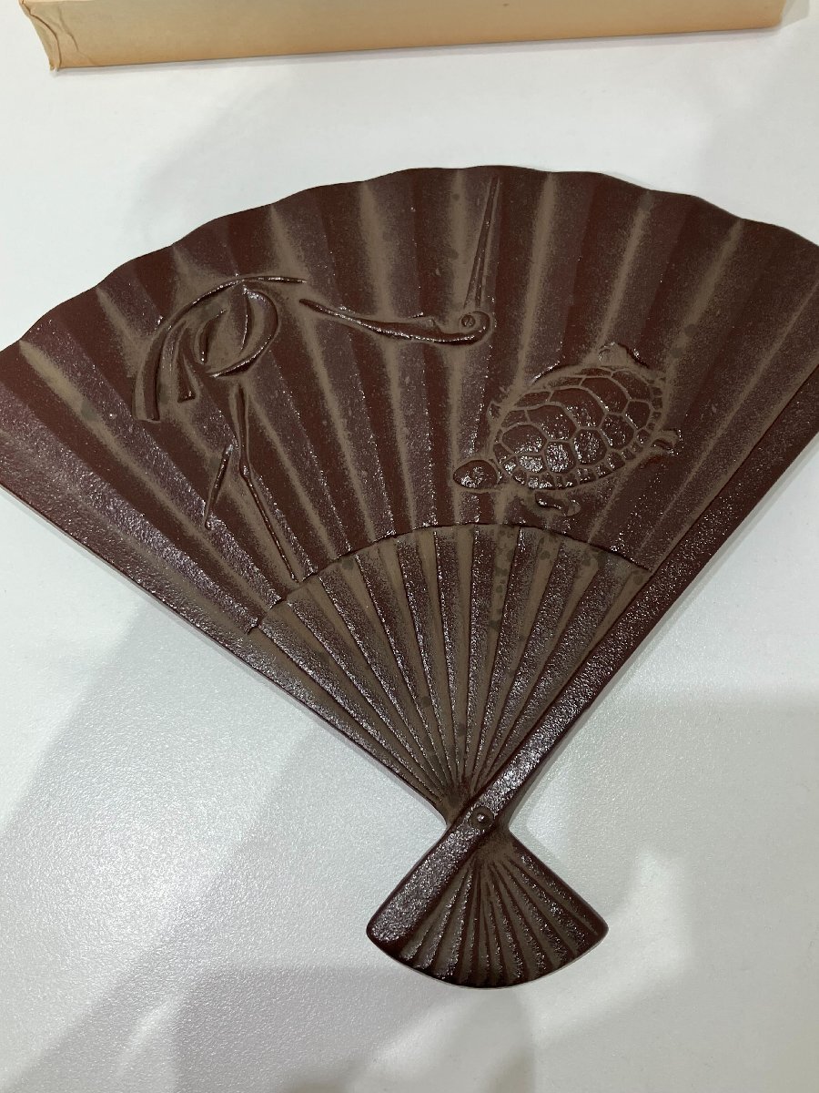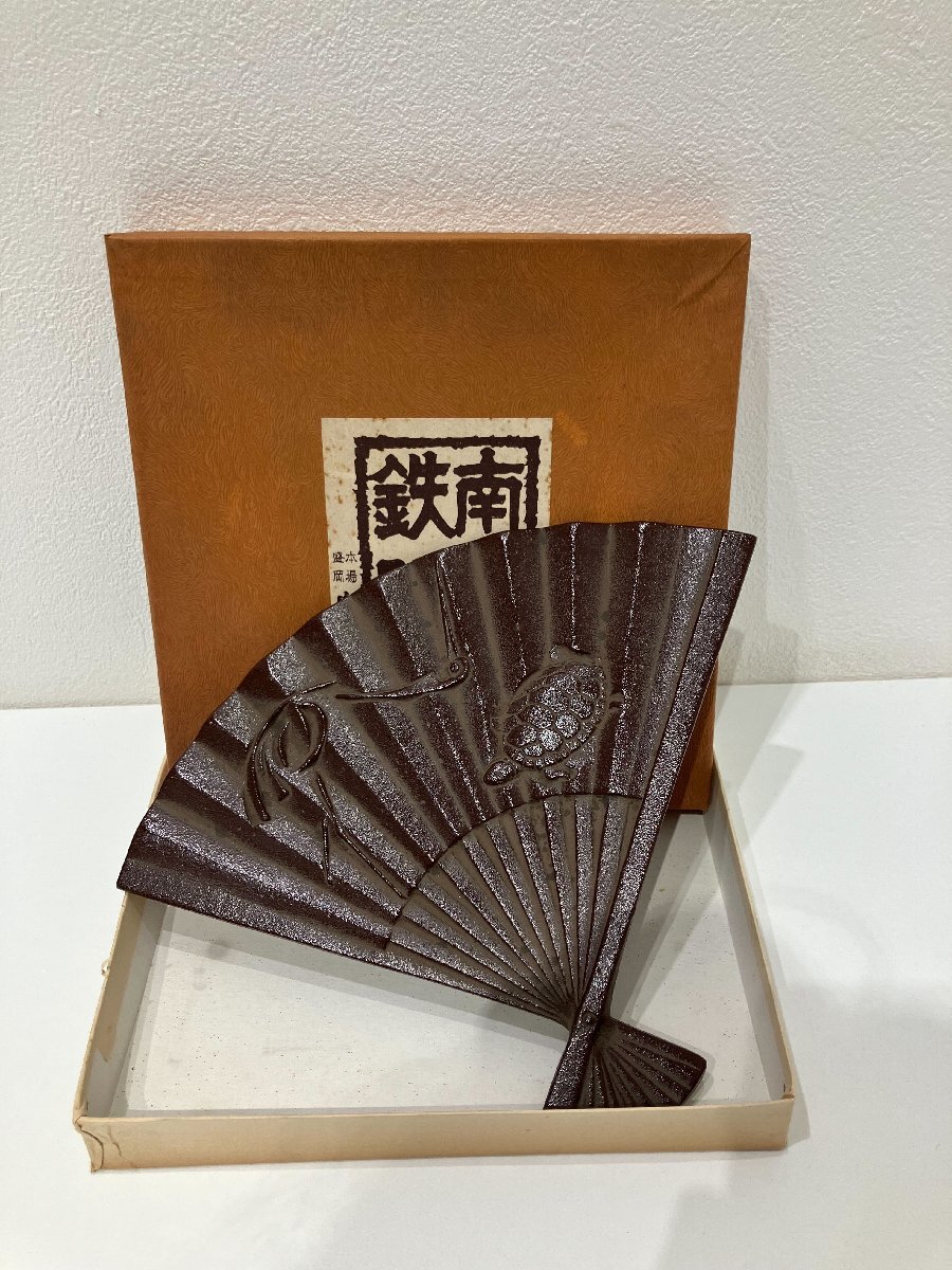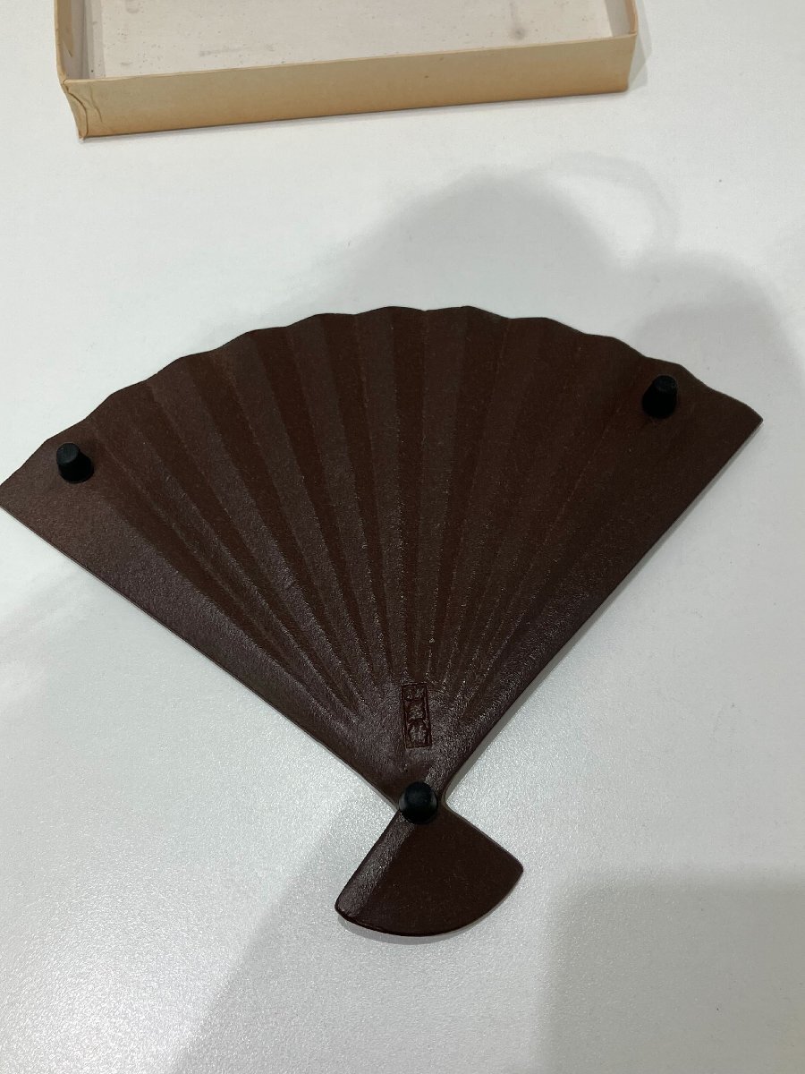 【O09644】南部鉄器 置物 オブジェ 鉄製小物 工芸品 岩鋳 金属工芸 扇子 |