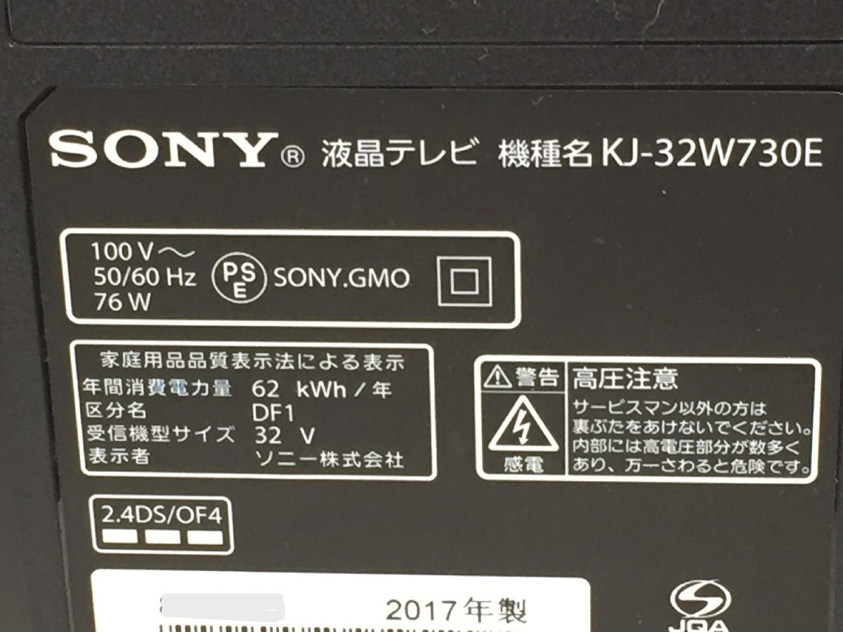 メーカ:SONY 品番:KJ-32W730E モニターサイズ:32インチ 付属品// 電源ケーブル B-CASカード リモコン(動作確認済) ※標準添付品・別売品関係無く上記に 記載されていない物は付属しませんのでご了承願います。