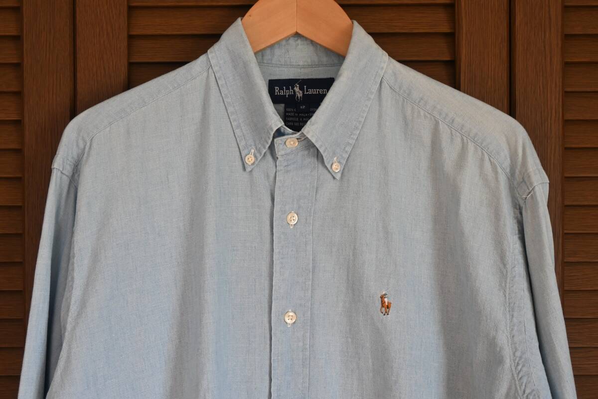 ラルフローレン RALPH LAUREN シャンブレーシャツ ボタンダウン ロゴ刺繍 長袖 90s ビンテージ BDシャツ