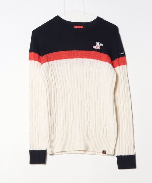 「New Balance Golf」 ワンポイント長袖ニット 0 ホワイト メンズ