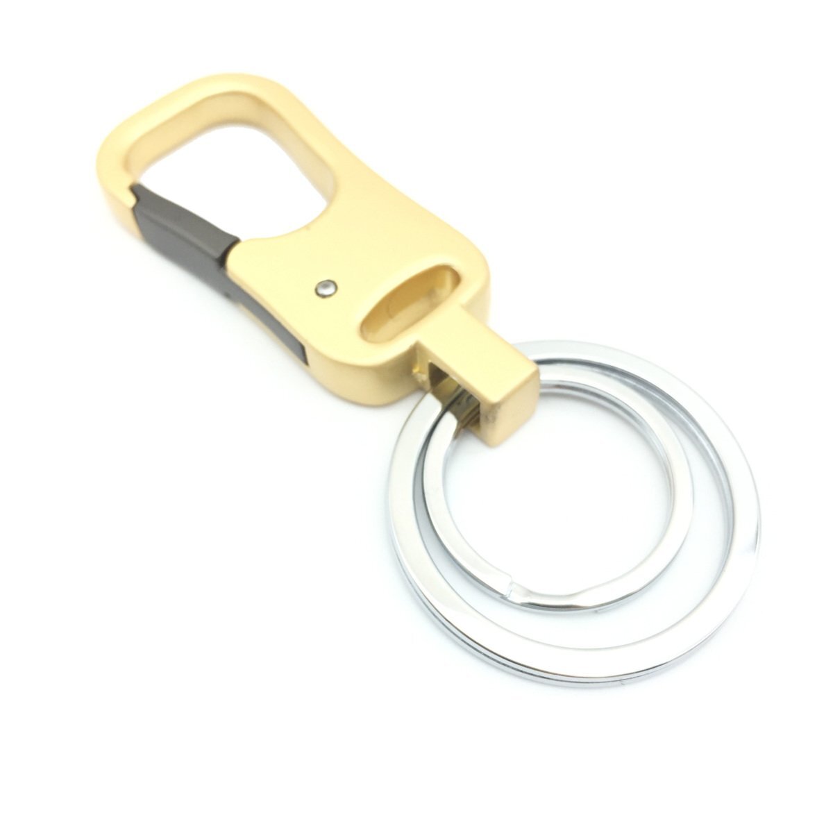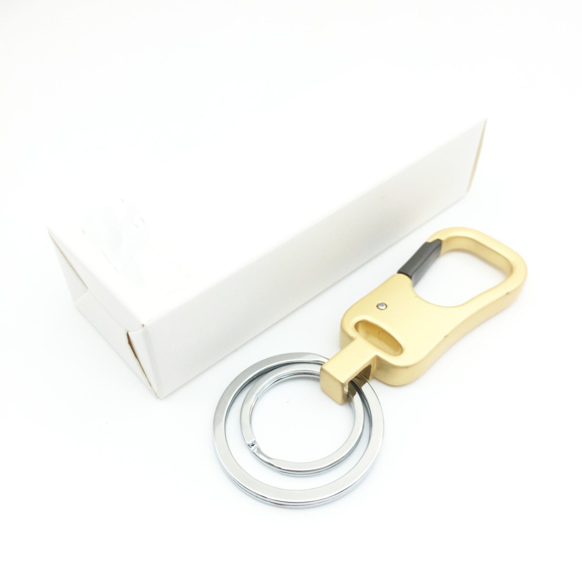 ダブルリング キーホルダー カラビナ フック メンズ レディース シンプル デザイン メタリック ゴールド ギフトボックス・化粧箱付き