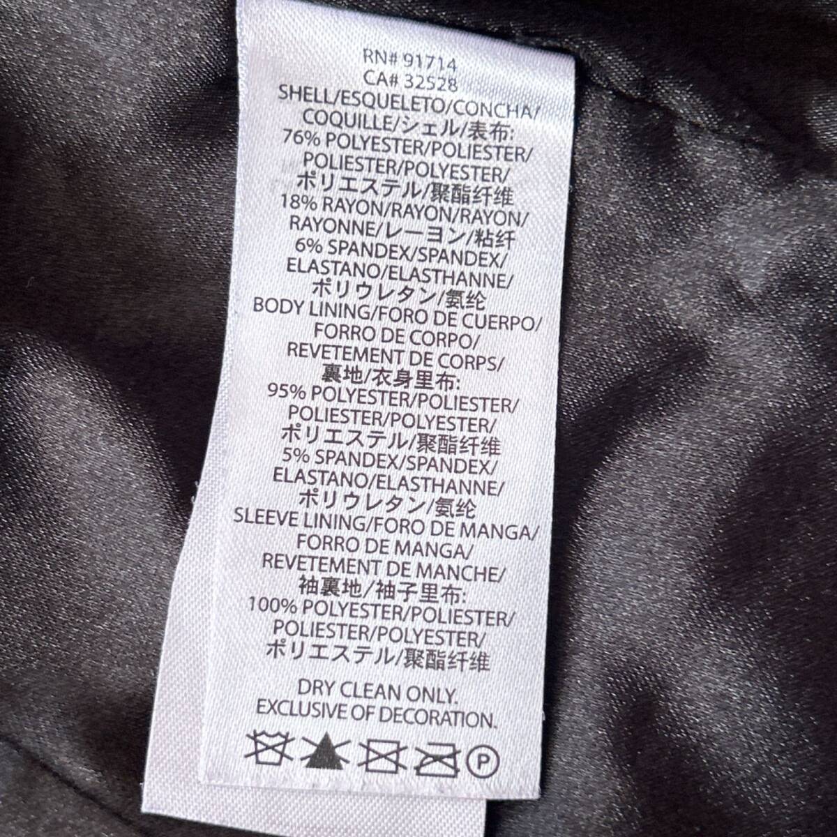 裏地:ポリエステル95%、ポリウレタン5%(身頃)、ポリエステル100%(袖)