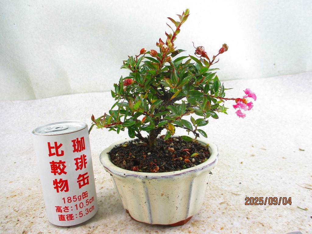 [讃岐屋緑兵衛]姫百日紅 9/4開花〜花変化想定(9492白釉丸鉢)全高:21㎝※同梱包は「まとめて取引」手続厳守※送料明記*説明必読 *「まとめて取引」手続きされていない場合は同梱包できません。 *同梱包ご希望の際は追加送料発生します* *同梱包は、[讃岐屋緑兵衛]のタイトル商品に限ります。類似画像の他ID出品にご注意ください。 単品(セット品は1組)発送ご希望の際は「まとめて取引」の手続きをしないでください。入札前に必ず下記の「発送方法」に記載の送料を確認してください。 ■ヤフオクの取引においてメッセージは特に必要ありません。挨拶などを省略できる取引システムですし取引ナビの案内で進行状況が判るので都度の連絡は不要です。配送日時指定や連絡事項のみお知らせ下さい。双方合理的に進めましょう。また、お急ぎの方は入札をご遠慮ください。業務時間内のでの対応になります。 ■寸法は鉢を含む全高です。 一緒に撮影しているスケールまたは比較物をご参照ください。 珈琲缶は高さ約10㎝、直径約5㎝です。 500mlペットボトルは高さ約21㎝です。 ■画像の様子から経時変化しますので撮影日(画像記載)からの変化はご了承下さい。 *花物・実物は特にご注意下さい。画像(撮影時)では開花品でも、お届け時は花終わりを想定して下さい。 ◎落札が無い場合は、自動再出品が継続されます。 撮影から2か月経過した場合、どんどん開始価格が下がりますが、商品の劣化も進みますので、 撮影日からの期間経過品はある程度の劣化を想定で入札にご参加下さい。 商品により90日間程度(物によりそれ以上)同じ画像を使用しますので、必ず撮影日をご確認下さい。 ■当方、ここでの出品以外にも大量に在庫しています。 そのため、枯れなどのダメージが梱包時までに気づかない場合もあります。 その際、双方無条件でのキャンセルをご了解下さい。 |