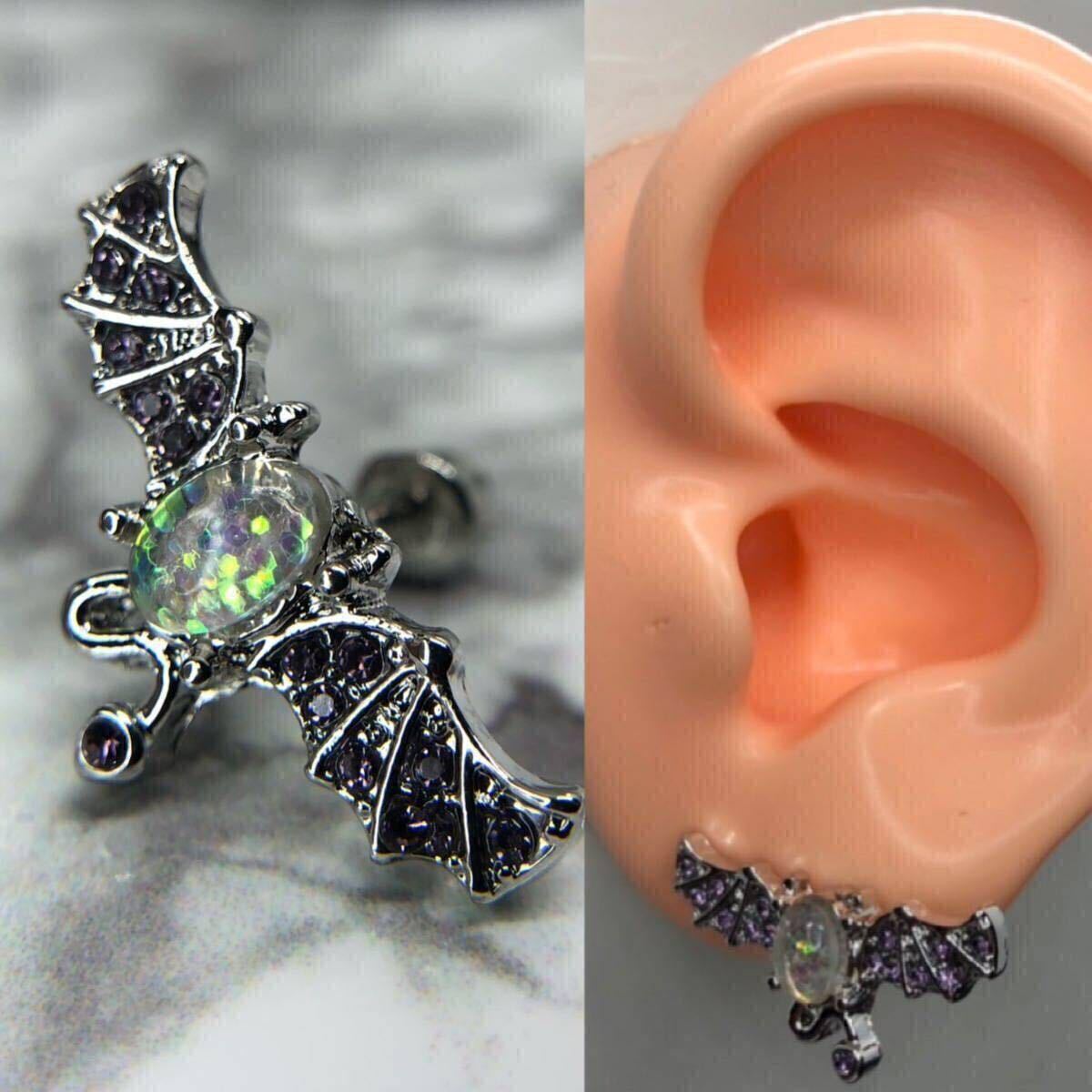 【新品】ピアス 18g 悪魔 デビル パープル ホワイト シルバー 羽 天使 エンジェル 尻尾 韓国 kpop 角 スタッド 片耳