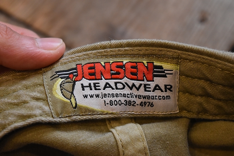 デッドストックJENSENジェンセンレザーバックルバック6パネルオールコットンキャップフラッシャー付きOneSize生成り×赤アメカジ t994