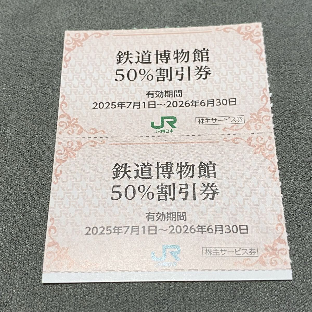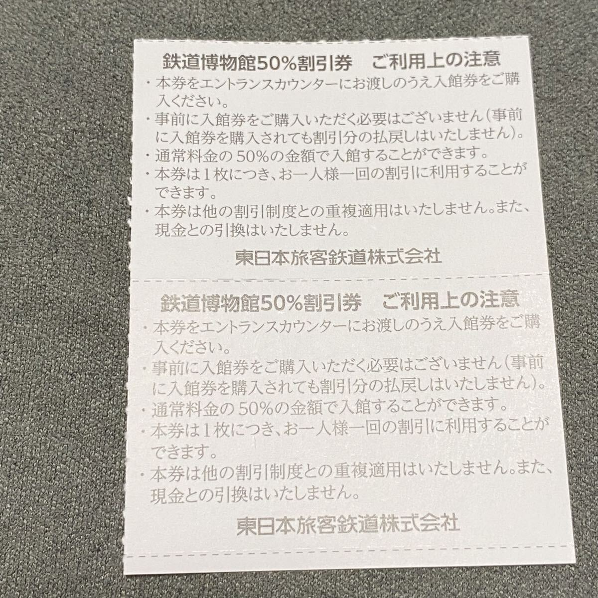 JR東日本 株主優待 サービス券の鉄道博物館 50%割引券 2枚になります。