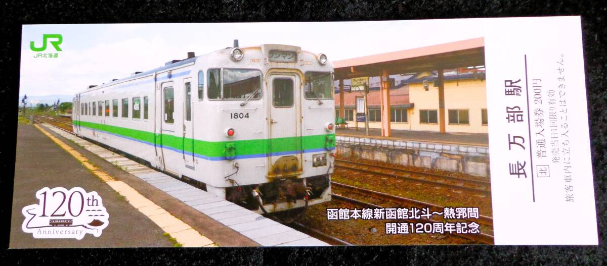【函館本線新函館北斗~熱郛間開通120周年記念入場券】 「長万部駅」