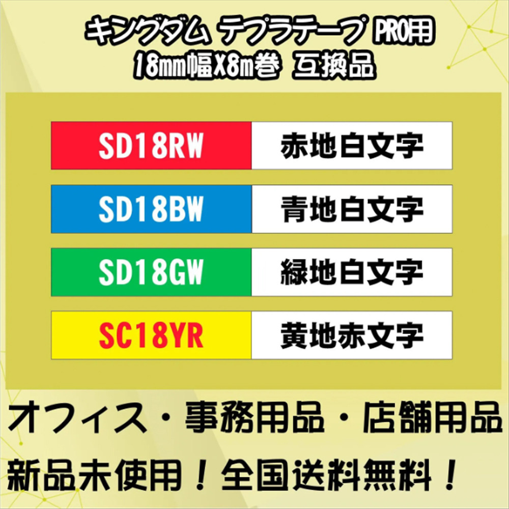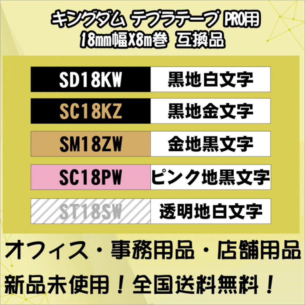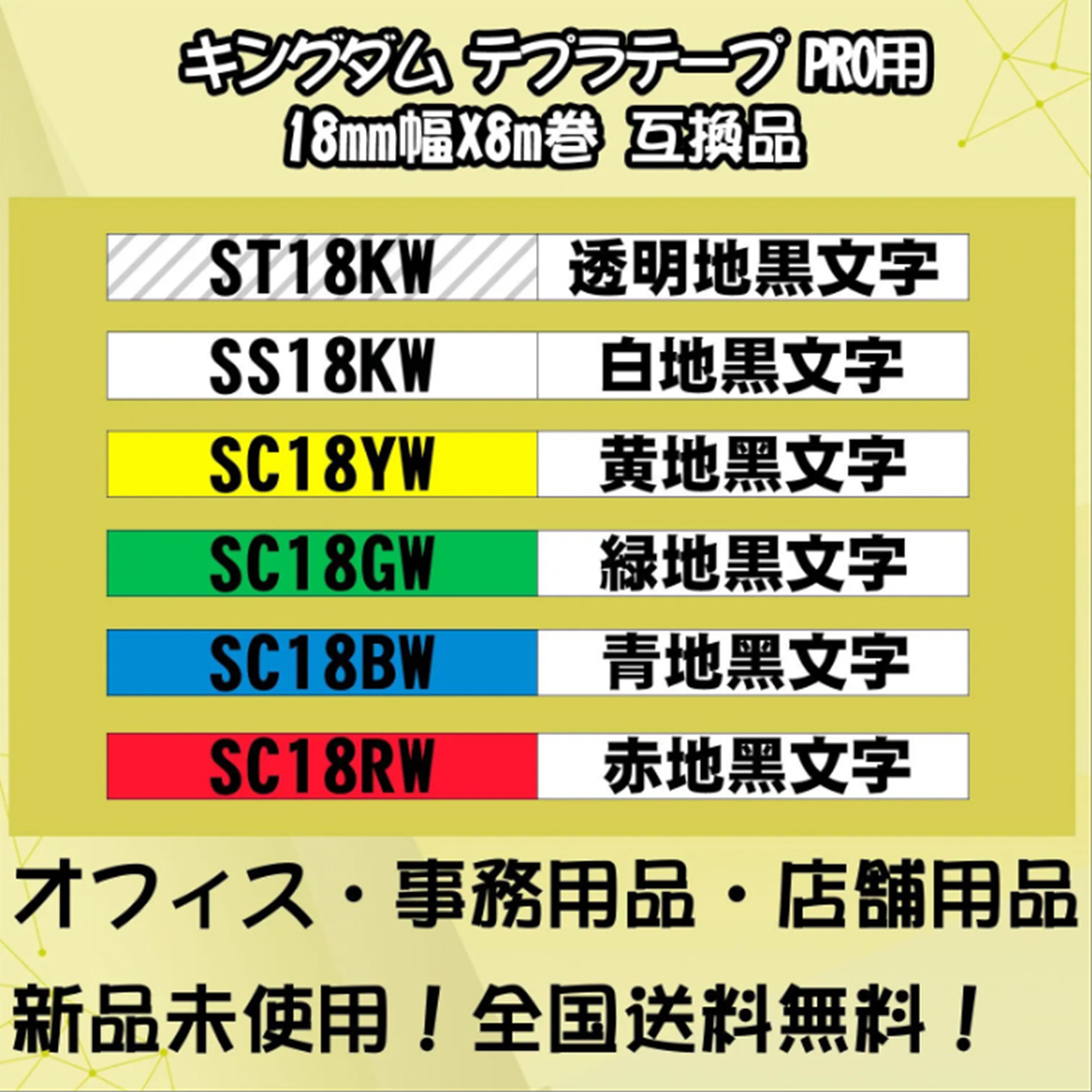 テプラテープ 18mm幅X8m巻・15色選択 キングジム PRO用 互換品 2個