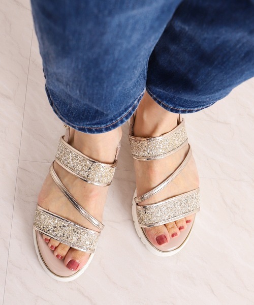 参考商品名:グリッターストラップ厚底ウェッジサンダル