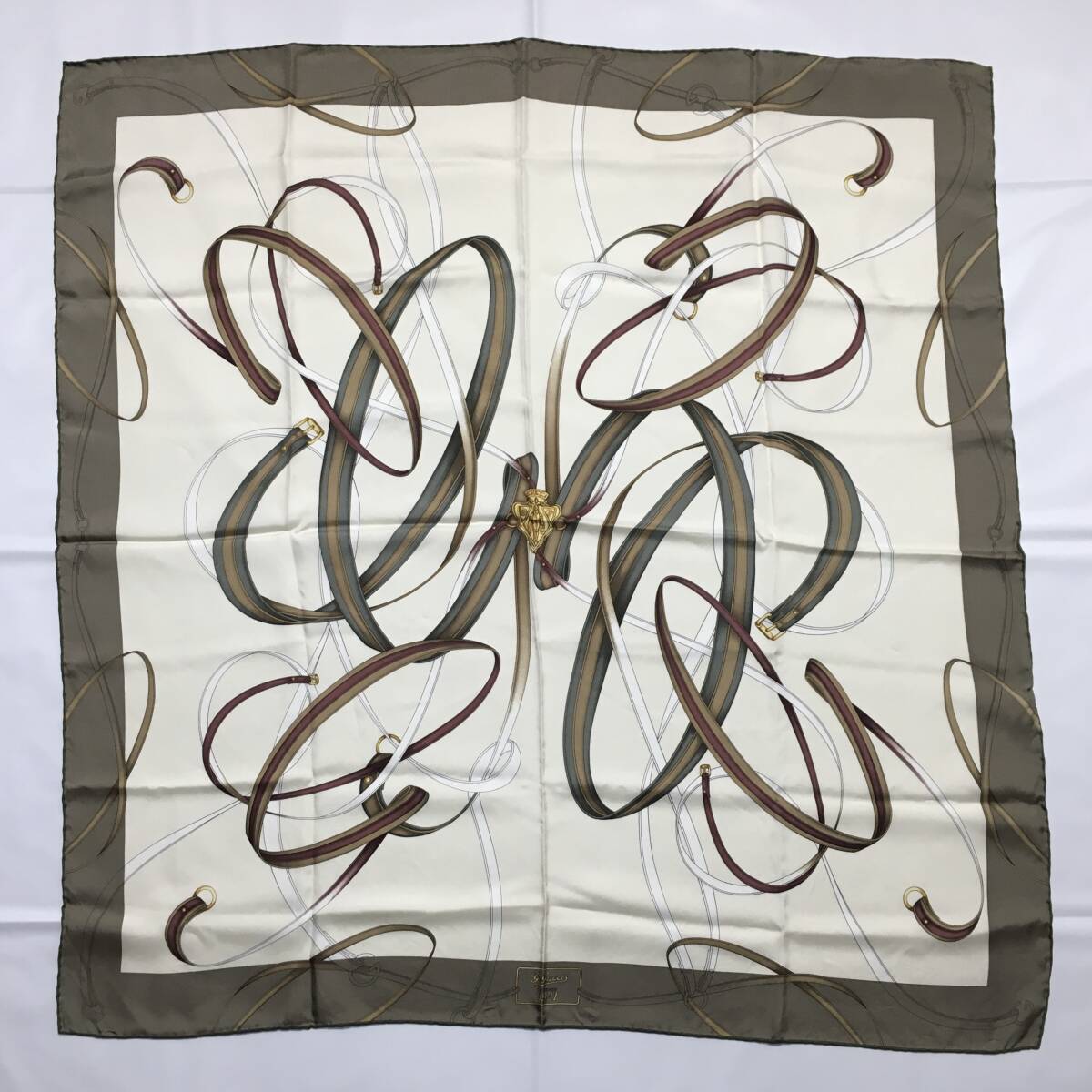 78B255| 美品 【 ブランド名 】GUCCI グッチ 【 カテゴリ 】大判 スカーフ 【 素材 】シルク100% 【 カラー 】マルチカラー オリーブグレー 【 その他 】タグあり 【 付属品 】- 【 サイズ 】(cm) ※実寸値 縦×横:85×83 《 備考 》 ・出品している商品は鑑定基準を全てクリアした正規品になります。コピー品の類は一切取り扱っていませんのでご安心ください。 ・中古品は商品の状態に合わせて価格を決めていますので低価格の場合もございますが正規品に間違いありません。 ・商品の状態につきましてはこれまでの経験に基づき評価させていただいておりますが、あくまで個人の主観となりますので神経質な方は購入をお控えください。 ・出来る限り現物の状態が分かるように出品しておりますが記載のない不明点等ありましたらお気軽にコメントいただければと思います。