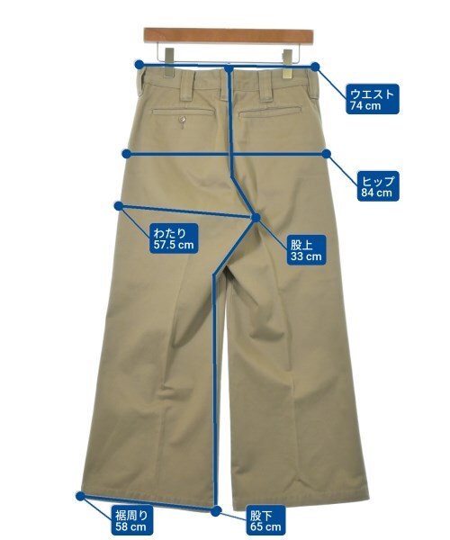 | ウエスト:74cm,裾周り:58cm,ヒップ:84cm,わたり:57.5cm,股上:33cm,股下:65cm |