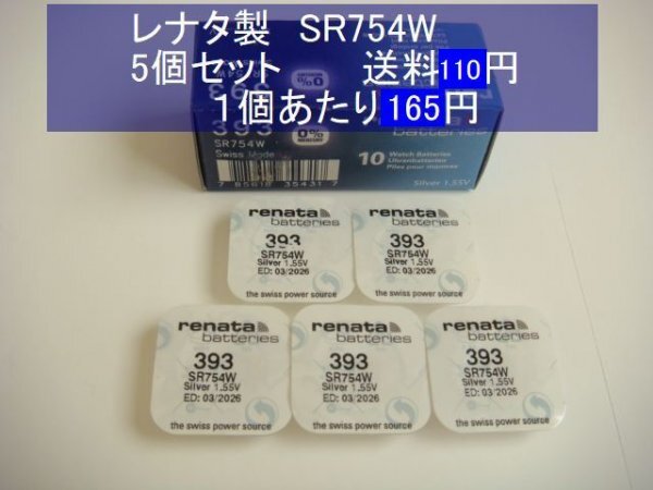 スイスレナタ 酸化銀電池 5個 SR754W 393 輸入 新品S LR754 SR48代用可 期限03-2026