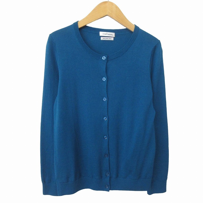 ニューヨーカー NEWYORKER カーディガン クルーネック ニット 長袖 ウール M グリーン 緑 レディース