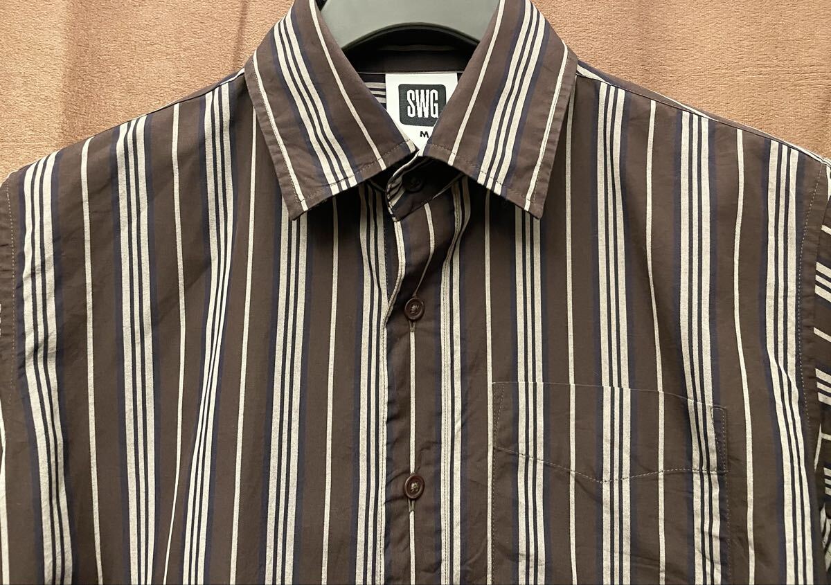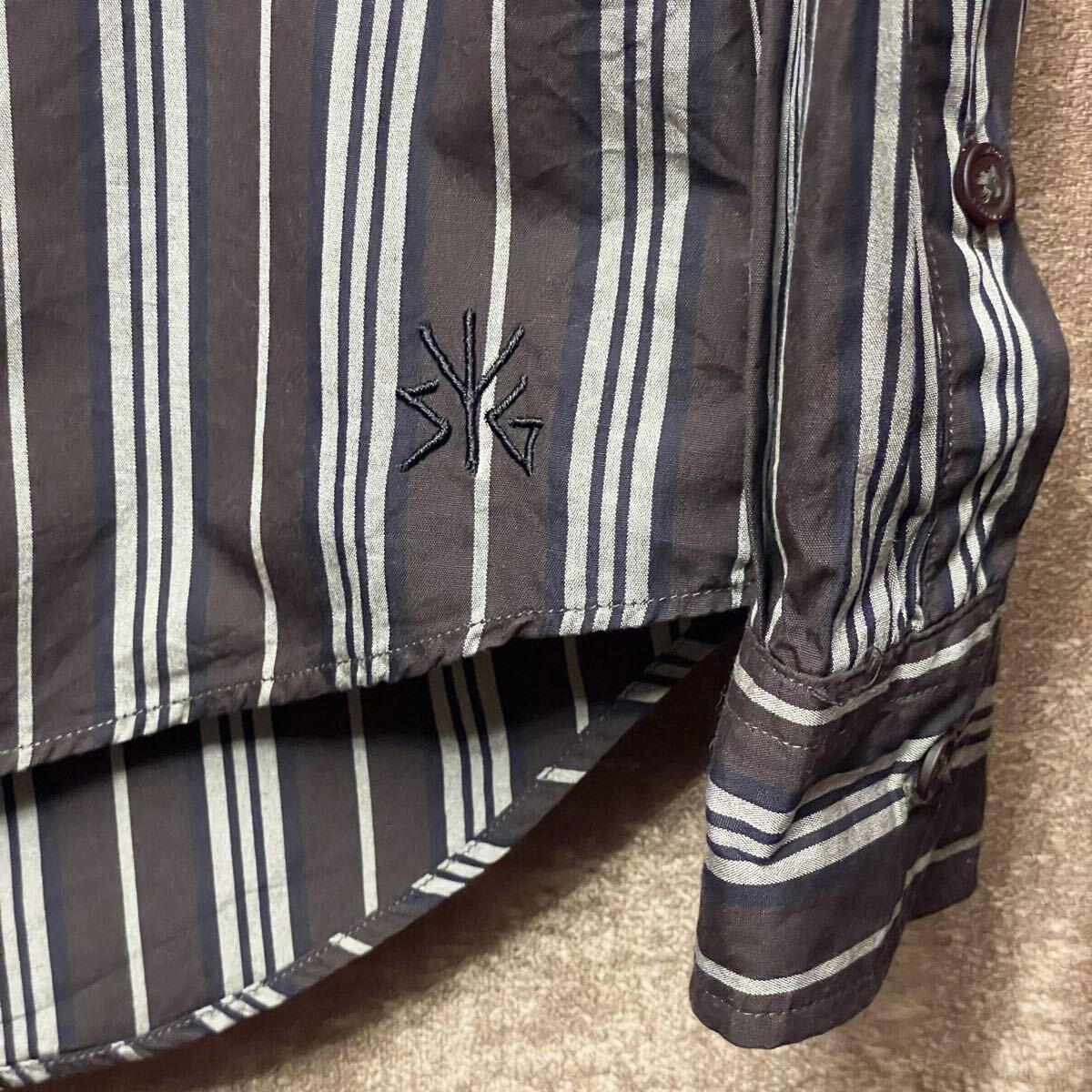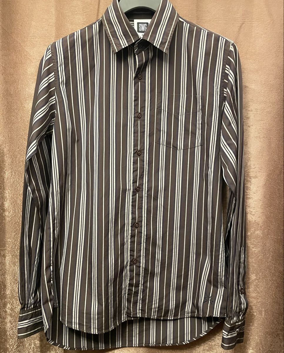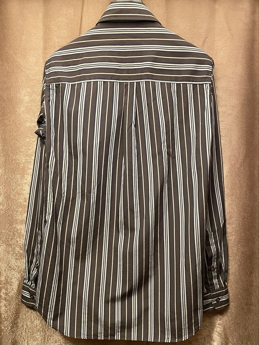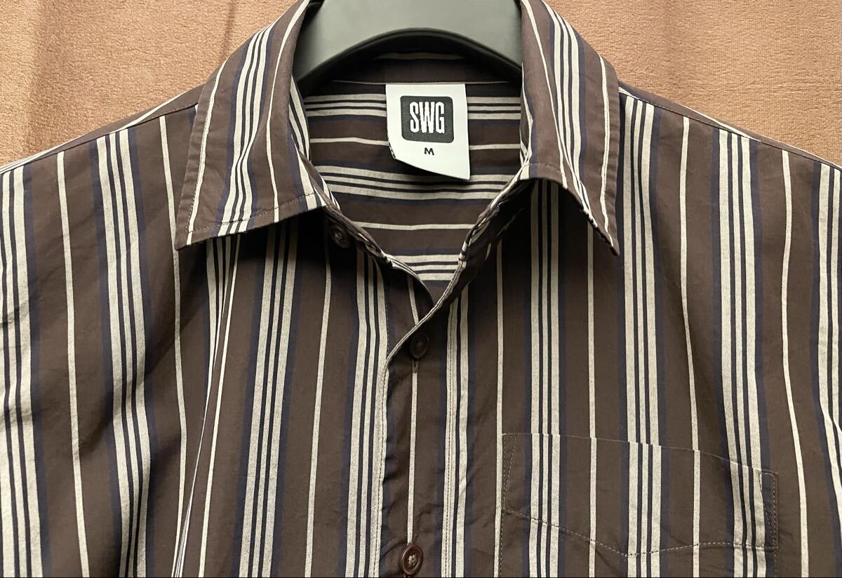 ドレスシャツのようなストライプシャツなので、ビジネスカジュアルやパーティーなどでも使えるおすすめの一品です。