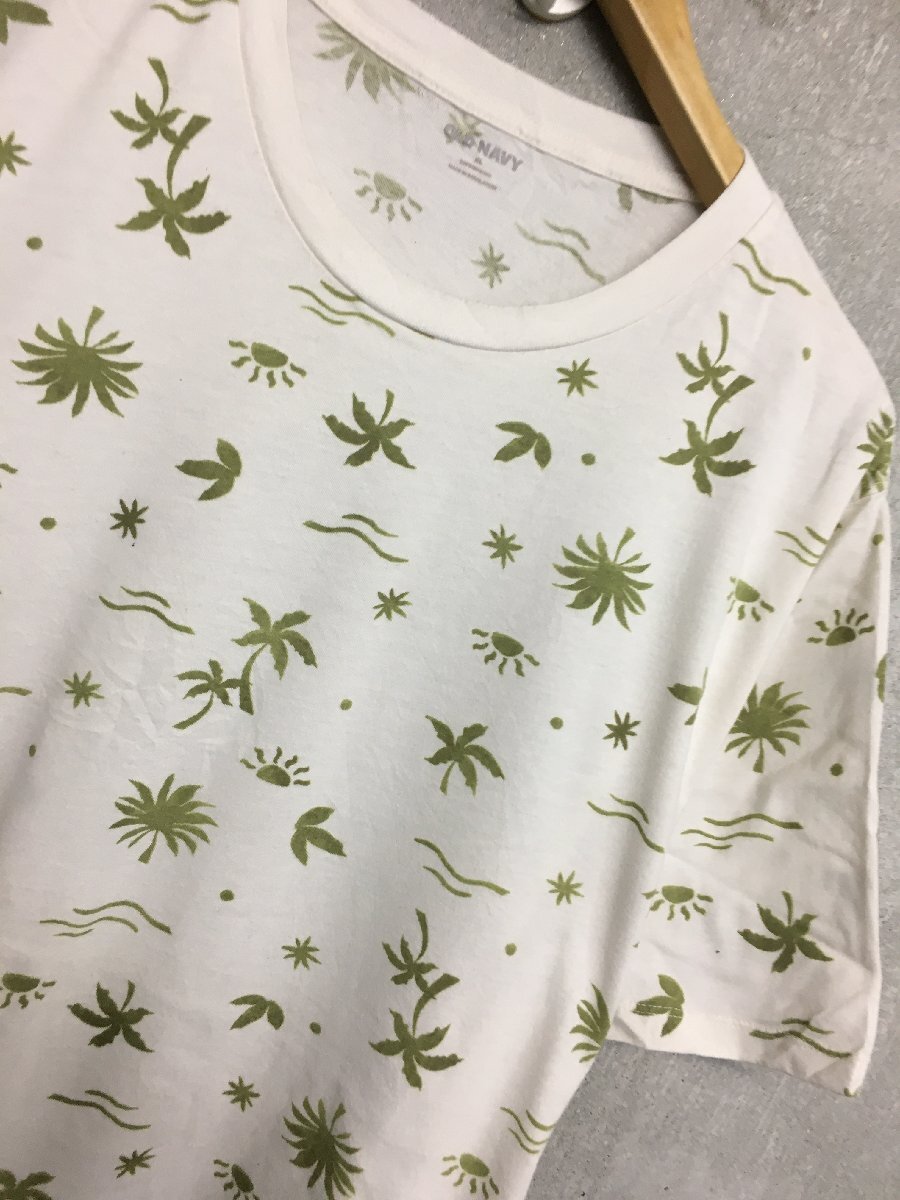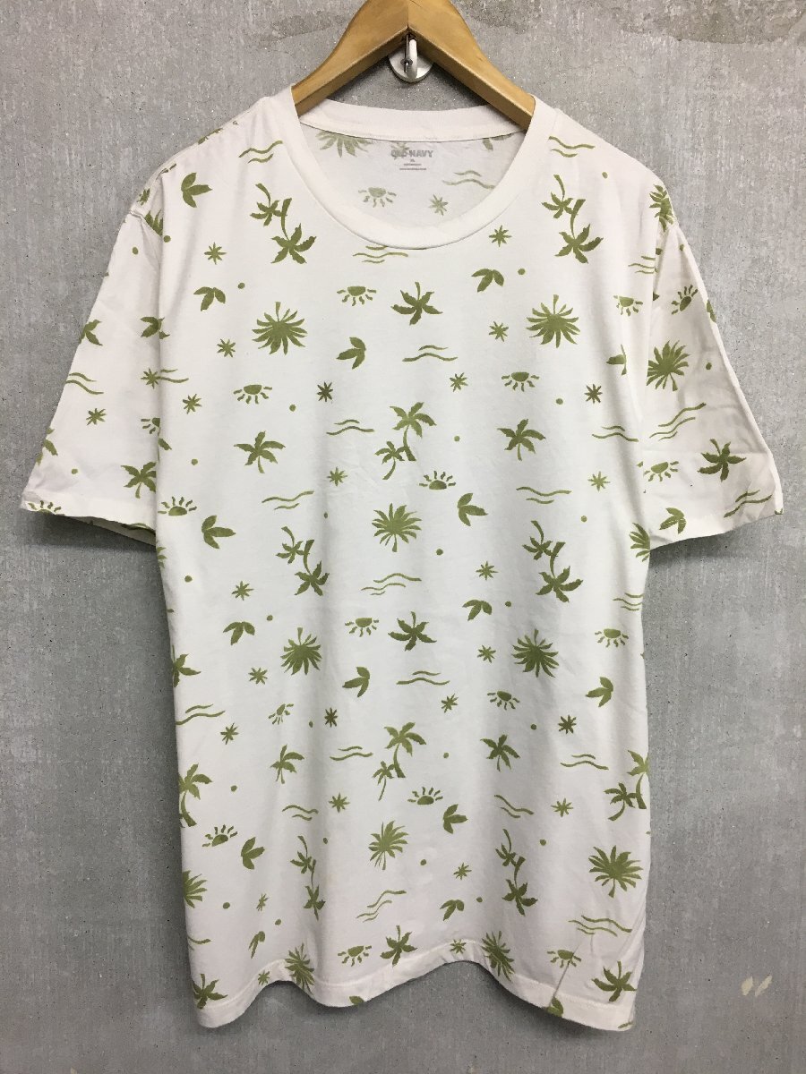 ◆OLD NAVY オールドネイビー リーフ 葉 柄 プリント Tシャツ 薄ベージュ系 サイズXL アメリカ USA 古着