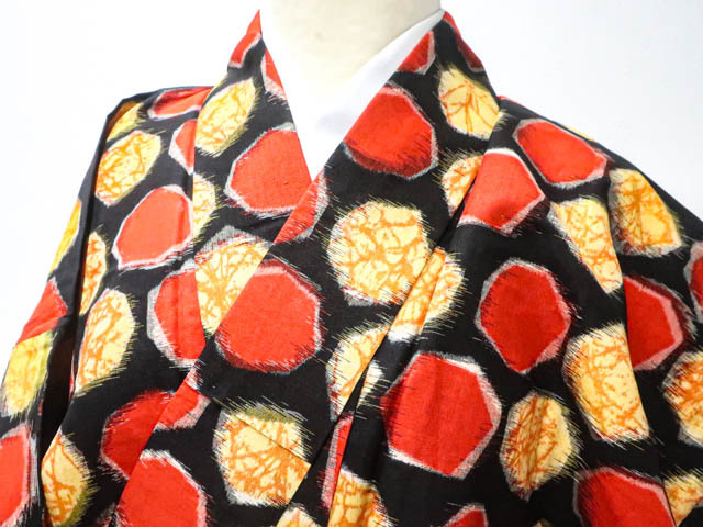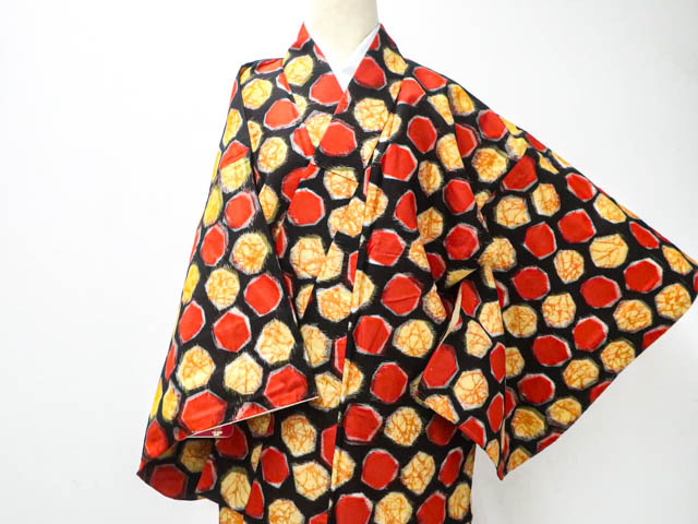 リサイクル商品のため、両袖、胴裏、八掛裾に薄汚れがございますが着用可能なお品です。 地色は 黒です。 1枚目の画像が近いお色かと思われます。 素材は正絹です。 |