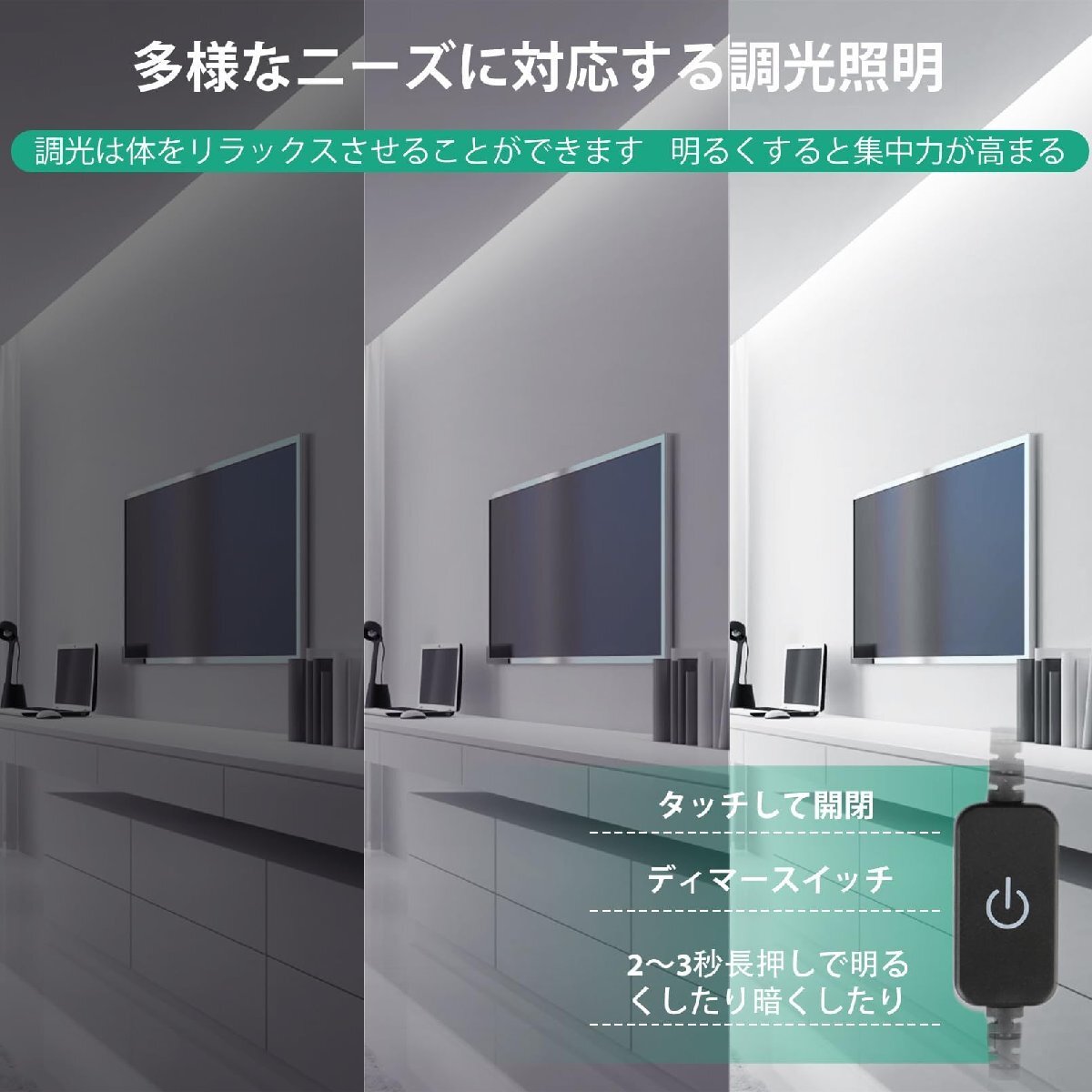 タッチ式調光最新のタッチ式調光コントローラーを搭載したテープライトLEDで、10%から100%までの明るさを簡単に調節可能。長押しで明るさを調整し、短押しでオン/オフができます。リモコンの再設定が不要なため、使いやすさが向上しています。