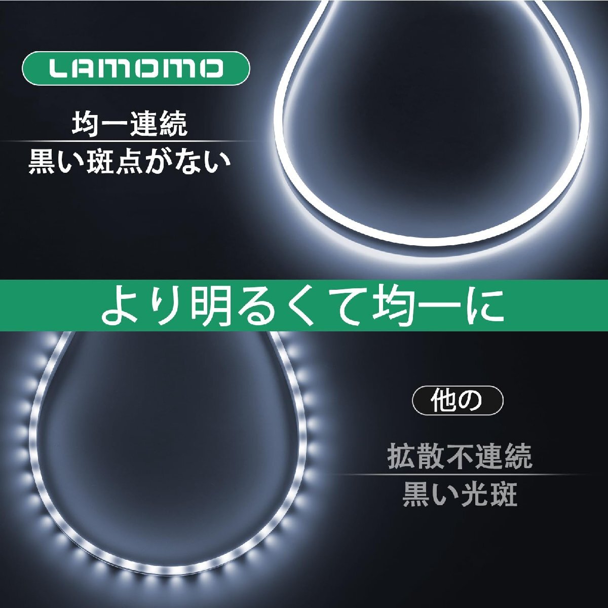 ブランド:Lamomoカラー:昼光色サイズ:10m明るく均一な照明1200個の高輝度暖白LEDを搭載したLEDテープライトで、6000Kの色温度により、120度の広範囲にわたって柔らかく均一な光を提供します。