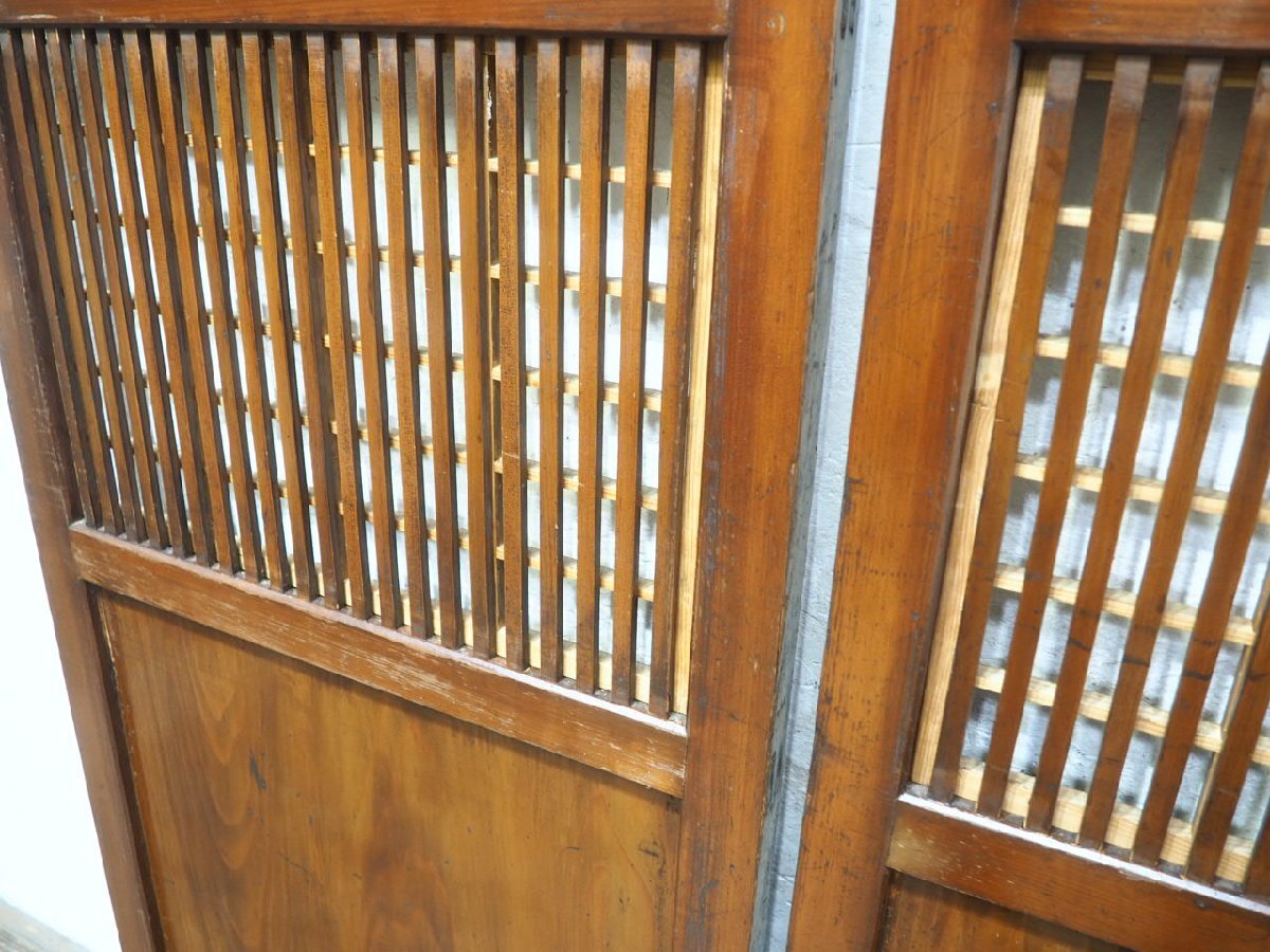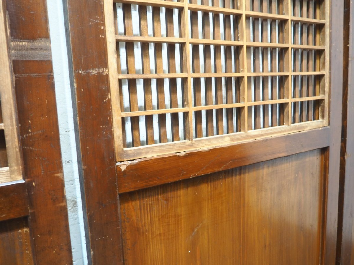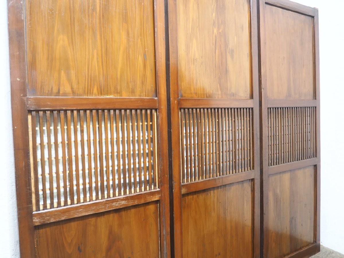 商品情報 | ■商品詳細■ レトロな古い木製引き戸、3枚セットです。 長年使い込まれた味わいのある品です。 一般のご家庭はもちろん、レトロな店舗什器にもお勧めです。 経年の傷や欠け、染みや木枠に欠け、 塗装の剥がれや落としきれない汚れ等がありますが、使用には問題ありません。 お手数ですが、障子紙はお客様の方で張り替えを前提にお願いします。 古い物とご理解いただければ幸いです。 ご不明な点などありましたら、質問欄にてお願いします。 ■サイズ■ 全体(最大値) (H 177cm×W 63cm×D 3,5cm)×3枚 竪框 5cm 鴨居に入る部分 1,5~2,5cm 多少の誤差はご了承下さい。 ドライバー1人での配達になりますので、場合(通路が狭い等)によっては 荷運びのお手伝いをお願いすることがあります。 商品は玄関先までの配達になります。 |