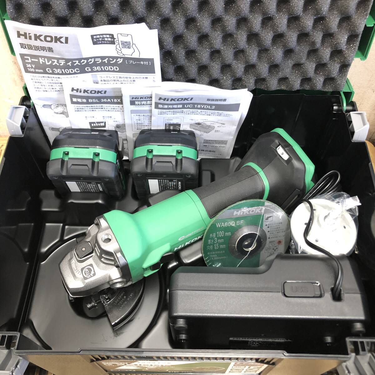 | *【新品】HiKOKI G3610DC (2XPZ) 2台セット 100mm コードレスディスクグラインダ ブレーキ付 充電器/BT/ケース ハイコーキ 日立 電動工具 |
