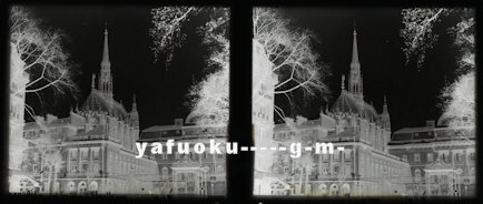 ステレオ写真には、写真のように中央の仕切り・左右写真のまわりに黒い枠はありません。