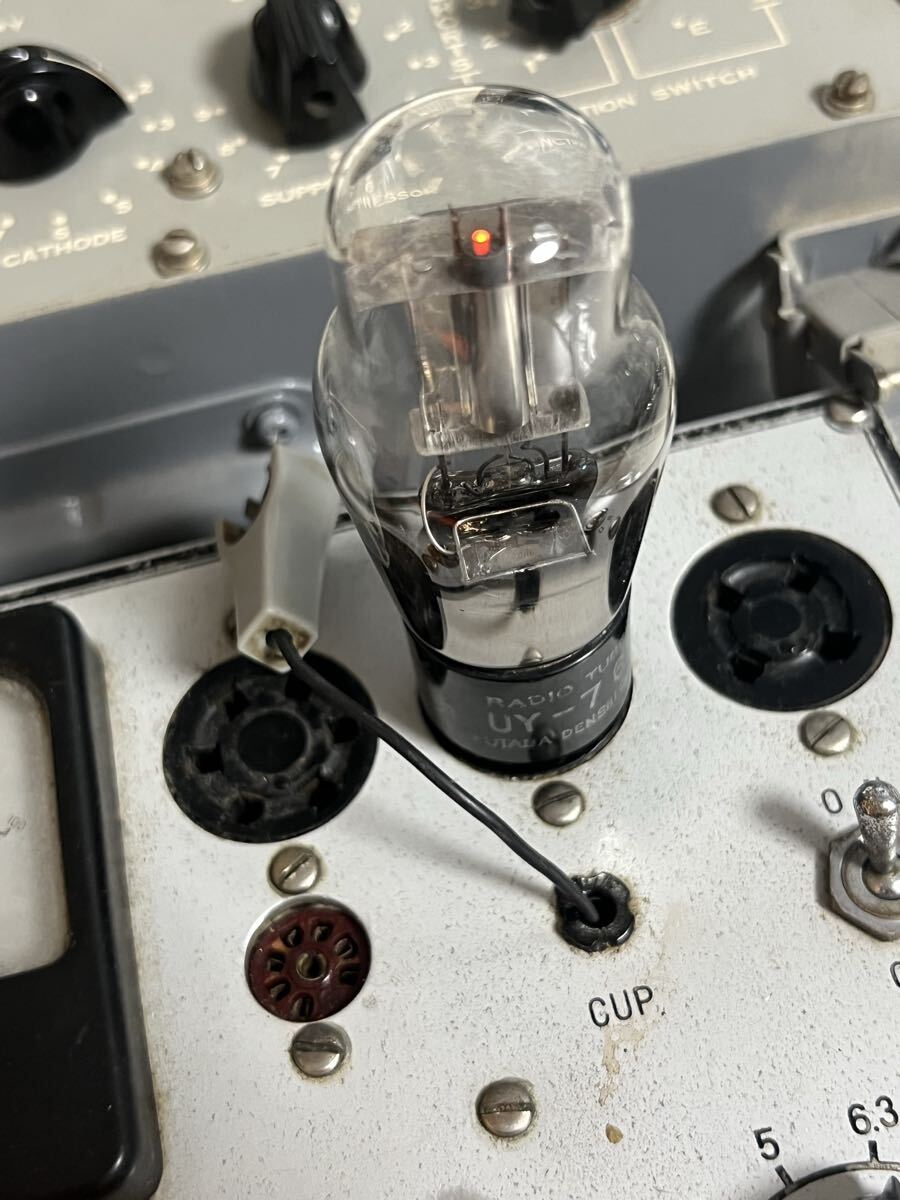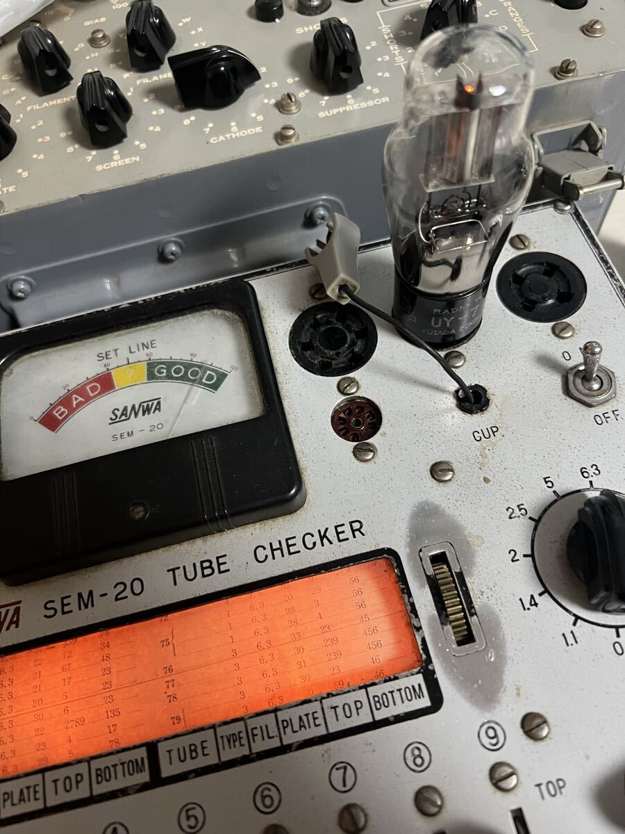 当方の試験機で同型式の未使用の真空管を試験すると80程度の値を示しますので基準として参考にしてください。