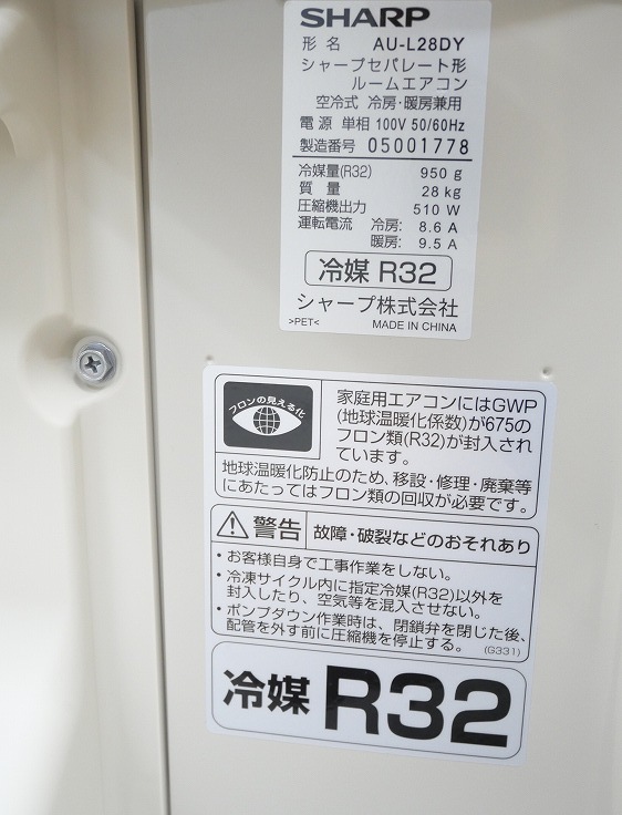 【未使用品】【室外機のみ】シャープ製/ルームエアコン/10畳用/AU-L28DY(7090576-2/2)