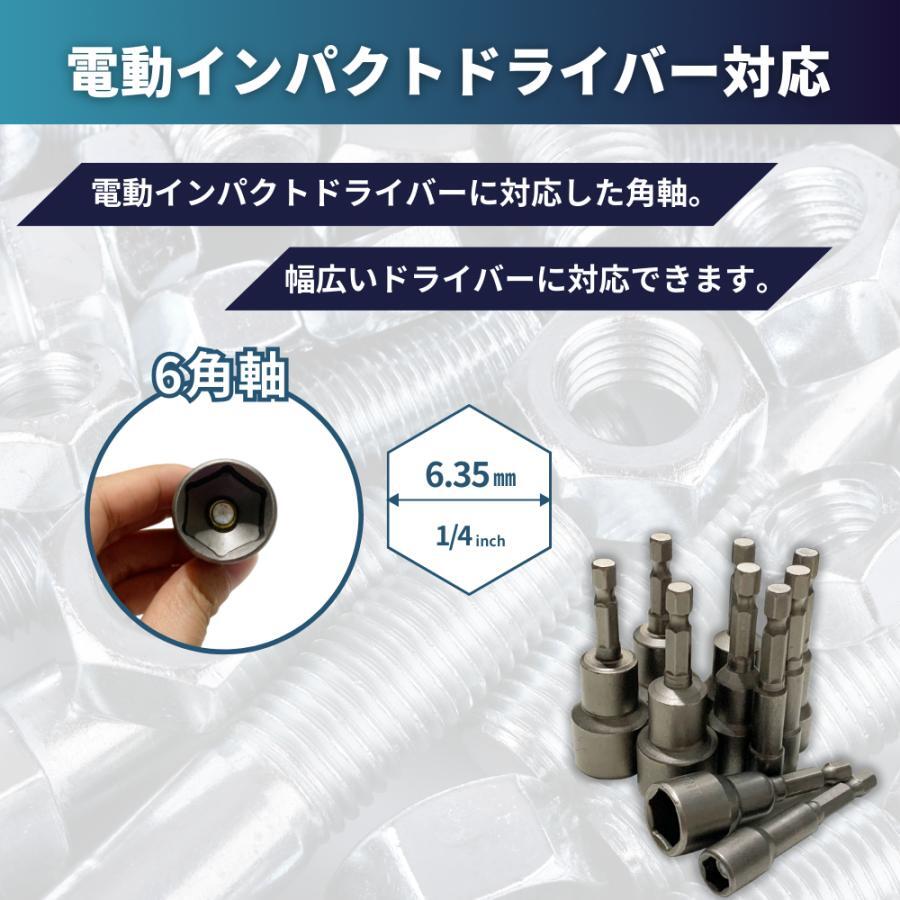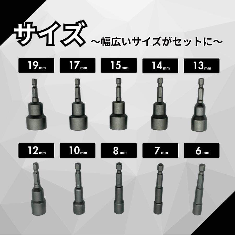 B マキタ 互換 ソケットビット 10本セット インパクトドライバー レンチソケット 6-19mm ビット径6.35mm 六角軸 電動ドリル ビット