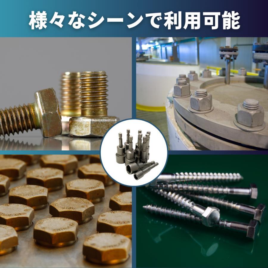 六角ボルト、ナットの着脱、自動車の部品交換や機械修理など家庭用DIYからプロまで様々な用途にお使いいただけます。