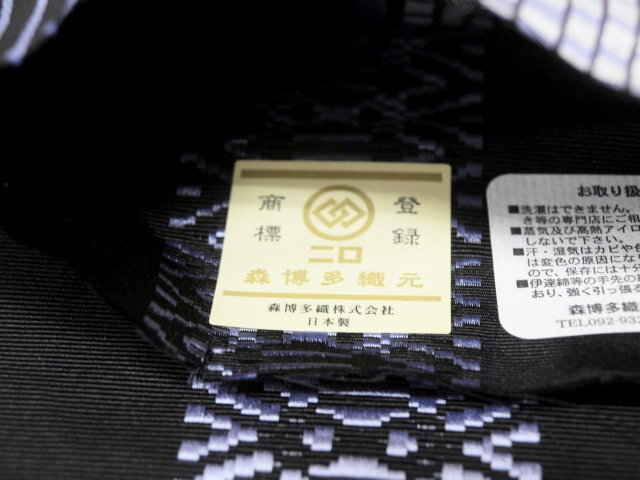 カジュアルに簡単に結ぶことができる半幅帯です。小紋や洗える着物、浴衣などにいろいろ結べます。文庫結びや貝の口など結び方もいろいろ、帯〆や帯揚げもいらず気軽にお使いいただけます。本場筑前博多特選小袋帯 色合いや織りも面白くリバーシブルで素ので両面、楽しめます。 素材:絹100% 森博多織謹製日本製 本場博多金印付き幅:約16.2cm 長さ:約378cm*商品をご覧になりたいお客様は御連絡の上ご来店ください03-3663-7071(きもの遊着苑・杉山(株))<平日10時から17時まで>接写の加減で多少色が実物と異なる場合がございますのでご了承の上、落札して下さい <発送・ご要望>土曜・日曜・祝日を除く10:00~17:00までとなります実店舗がございますので商品が売り切れてしまう場合はご了承下さい