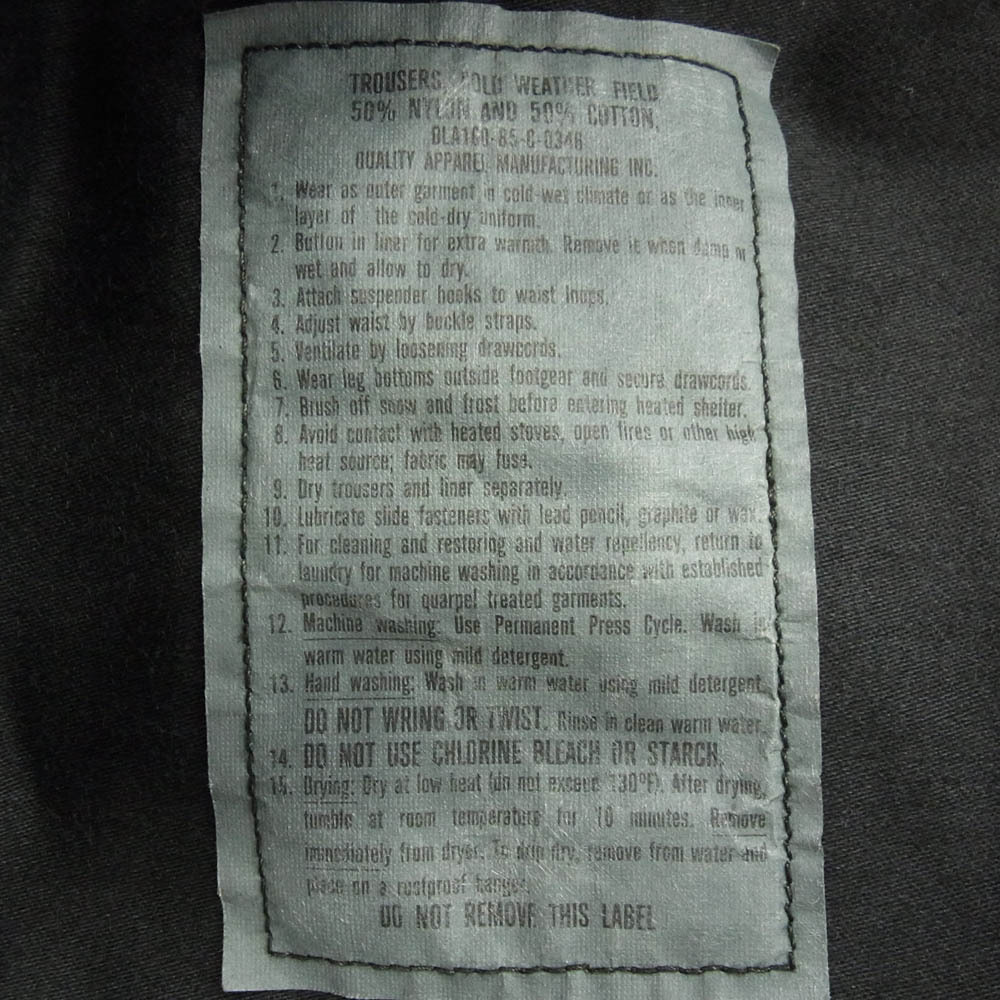 | 商品名 | アメリカ軍 us.army DLA100-85-C0346 85年製 80s M-65 フィールド カーゴ トラウザー パンツ 後染め ブラック系【中古】 |