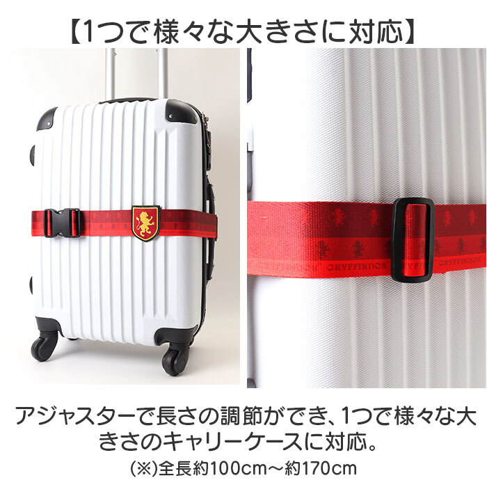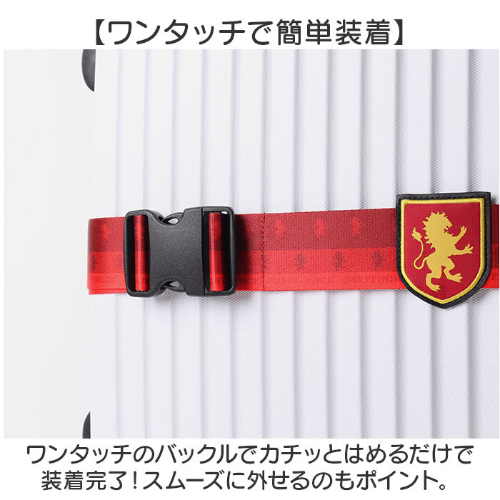商品説明 | ・・【可愛いベルトで荷物を守る】 ・ハリーポッターのデザインが魅力♪キャリーケースベルトが新発売。 ・【4つの寮のプリント】 ・ベルト全体に各4つの寮のロゴやカラーをプリント♪可愛さはもちろん、目印にも最適☆ ・【エンブレムワッペンも】 ・それぞれの寮のデザインに合わせたエンブレムワッペンのモチーフもプラス。 ・【ワンタッチで簡単装着】 ・ワンタッチのバックルでカチッとはめるだけで装着完了!スムーズに外せるのもポイント。 ・【1つで様々な大きさに対応】 ・アジャスターで長さの調節ができ、1つで様々な大きさのキャリーケースに対応。 ・(※)全長約100cm~約170cm ・【盗難の抑制に】 ・ベルトで留めることでキャリーケースが開きづらくなるので盗難の抑制に ・(※)ロック機能は付いておりません。 ・【ジッパーが壊れても安心】 ・ベルトがキャリーケースを抑えてくれるので、不意の荷物の飛び出しを防いでくれる。 ・【ファンタジーが好きな方に】 ・原作や映画が好きな方だけでなく、ファンタジー、魔法系が好きな方にもオススメ! |