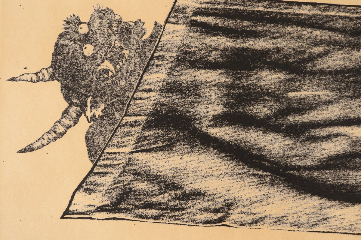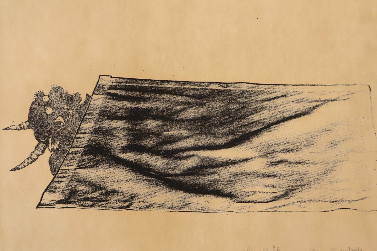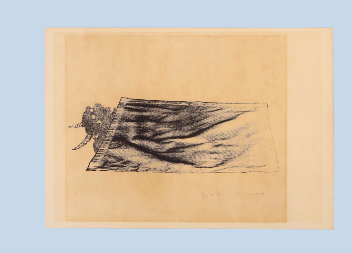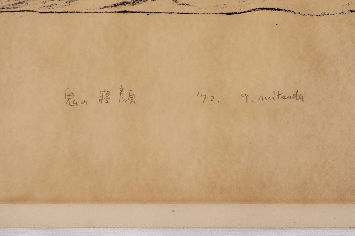 真作 三津田隆子 1972年 版画「鬼の寝顔」窓寸 31.5cm×26cm 大阪府堺市住 眠っている時は人間と変わらない安らぎや弱さを感じさせる 11397