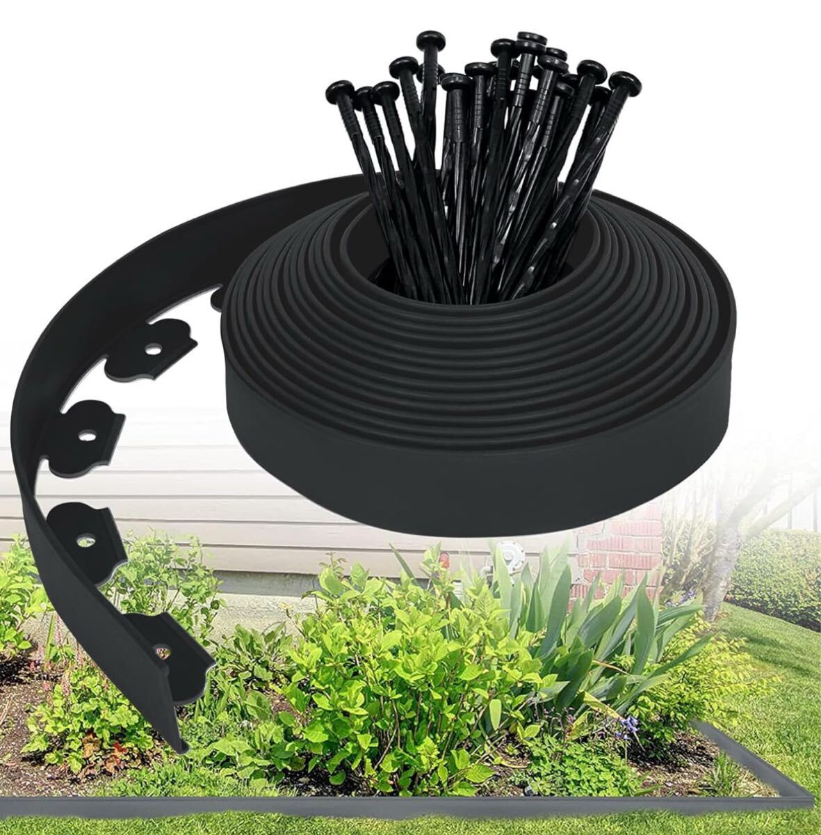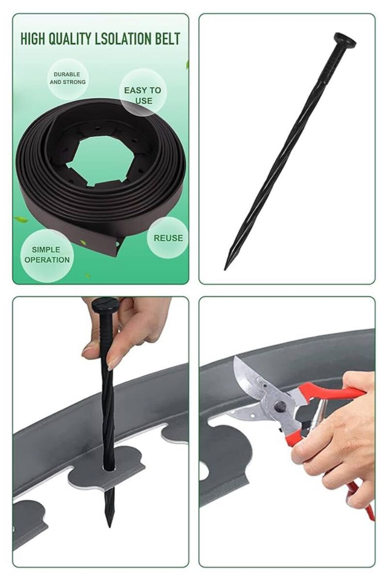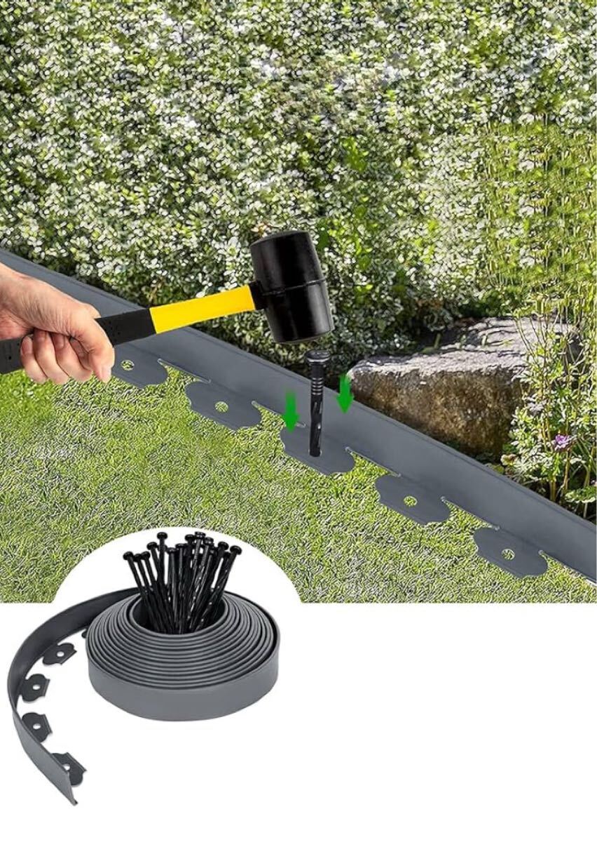 【DIY簡単】頑丈な厚肉L型デザインでしっかりガード!花壇の縁取りや芝生の境界線に最適なガーデンエッジ。付属の専用釘で誰でも簡単に設置できます。