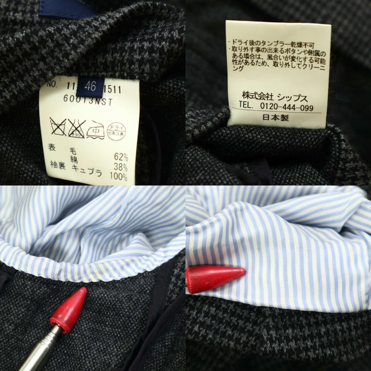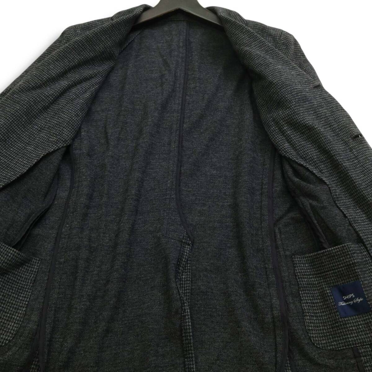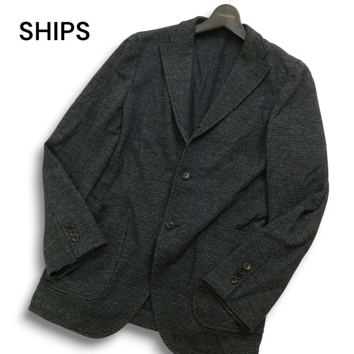 SHIPS シップス 秋冬★ ウール ニット 千鳥柄 段返り アンコン テーラード ジャケット Sz.46 メンズ 灰 グレー 日本製