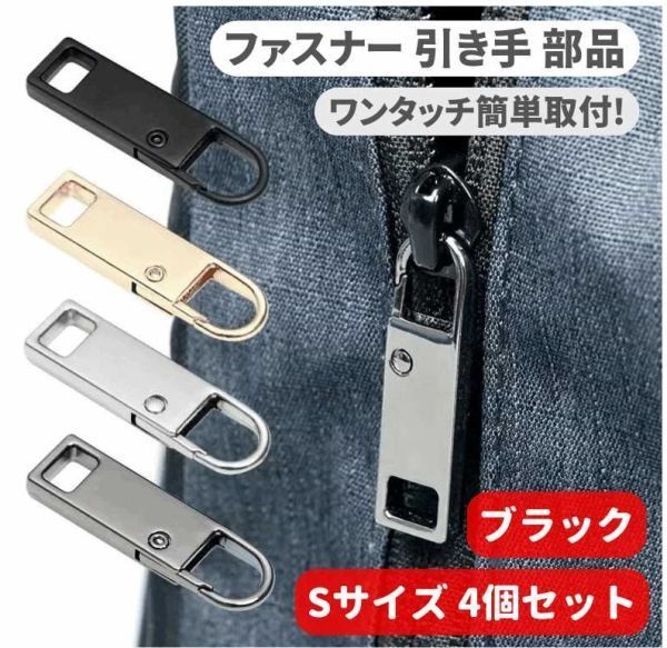 4個セット チャック ファスナー ジッパー 交換用 プルタブ 引き手 修理用 ジャンパー バッグ カバン 財布 Sサイズ ブラック Z176