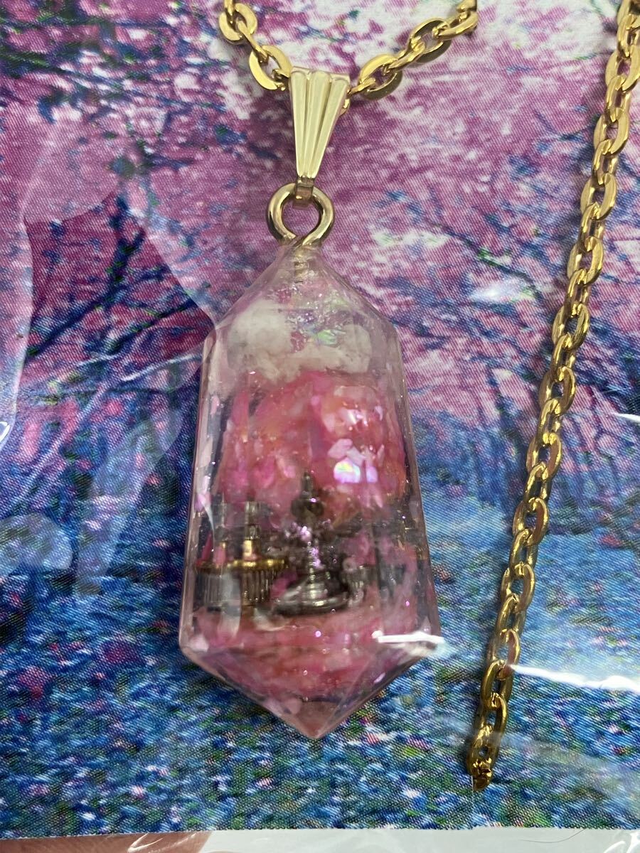 レジンで作られた容器の中に金属パーツが入っていて綺麗です。