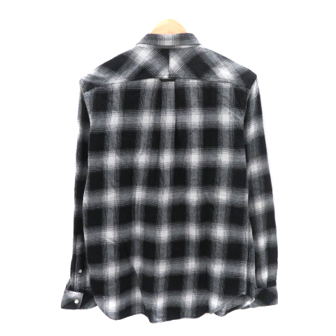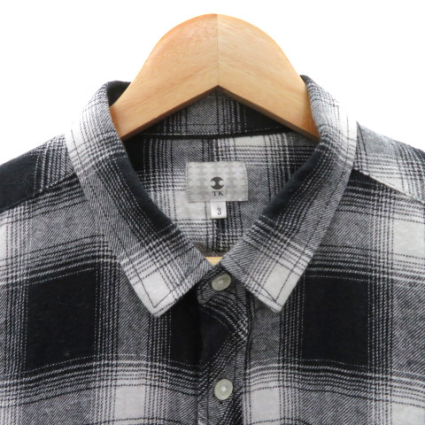 タケオキクチ TAKEO KIKUCHI カジュアルシャツ 長袖 チェック柄 3 黒 ブラック 白 ホワイト /YK40 メンズ