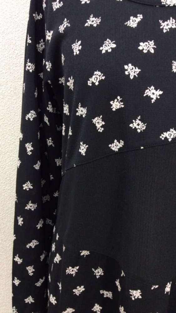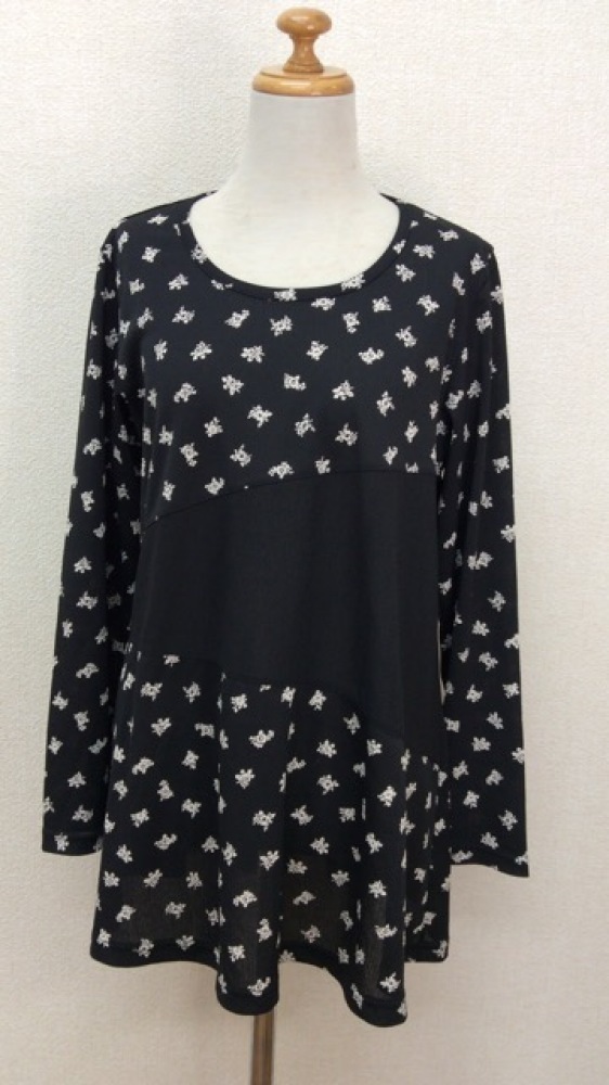 管理番号:99^124593 tomatsu 黒に白花柄のチュニック プルオーバー 表示サイズ:なし 実寸(参考)