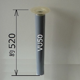 FRP防水用のタテ型FRPドレンにPVCパイプ,VU50×495mmを接着しています。手間いらずで便利です。
