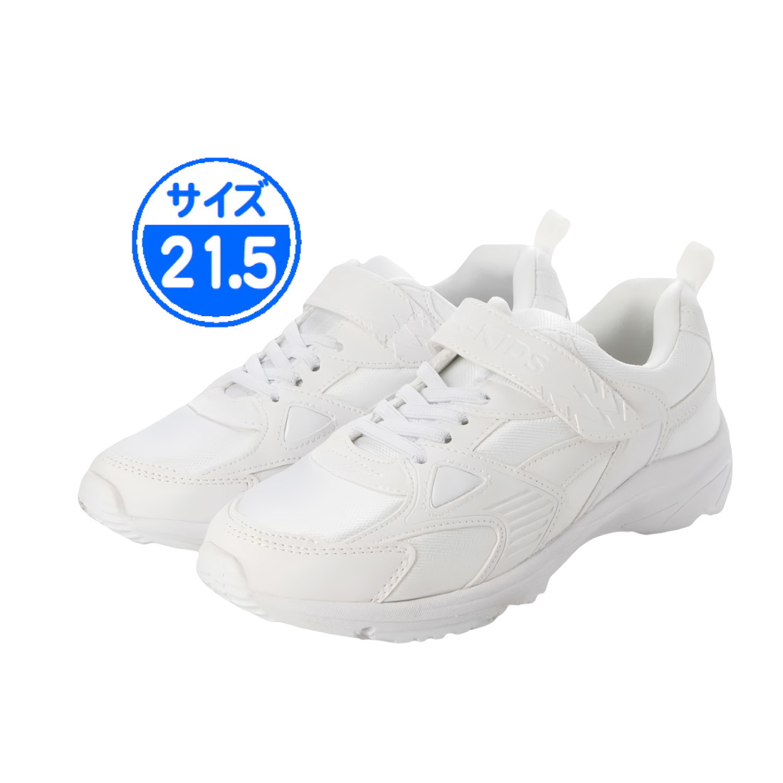 白一色のシンプルなスポーツタイプの子供用スニーカー。