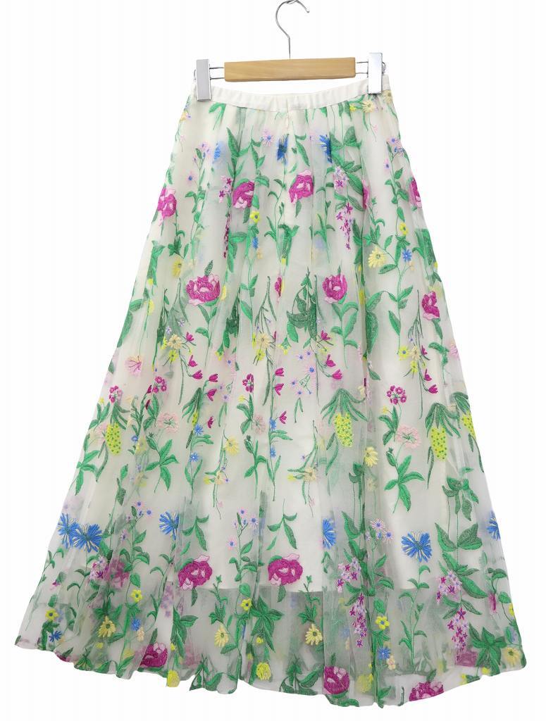 グレースコンチネンタル GRACE CONTINENTAL フラワー刺繍 チュール スカート 36(S) KINARI(キナリ) 春夏 レディース