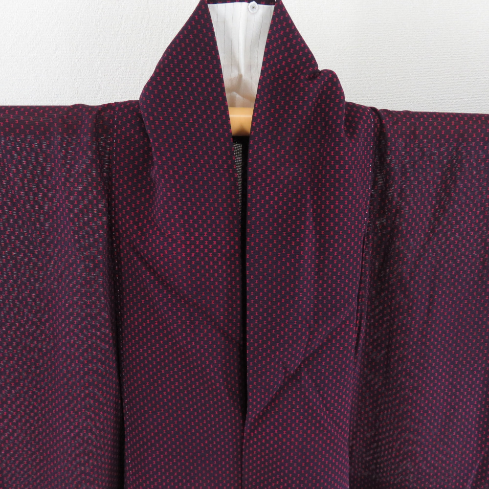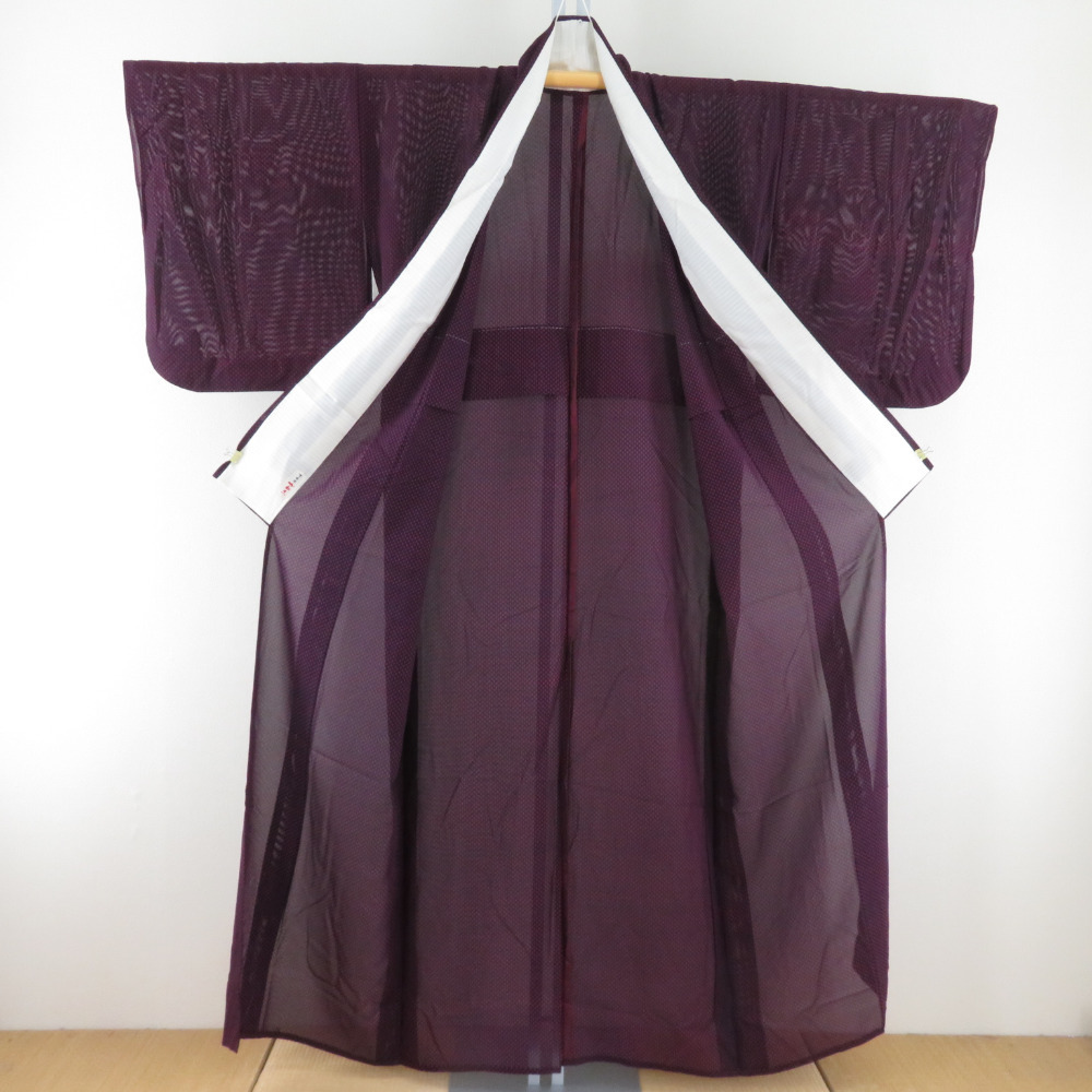 | 夏着物 小紋 単衣 絽 夏用 抽象文様 正絹 紫色 広衿 仕立て上がり 薄物 身丈152cm |