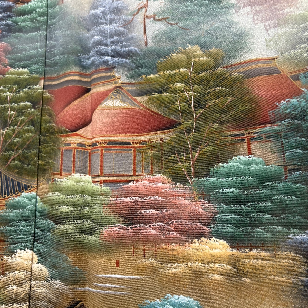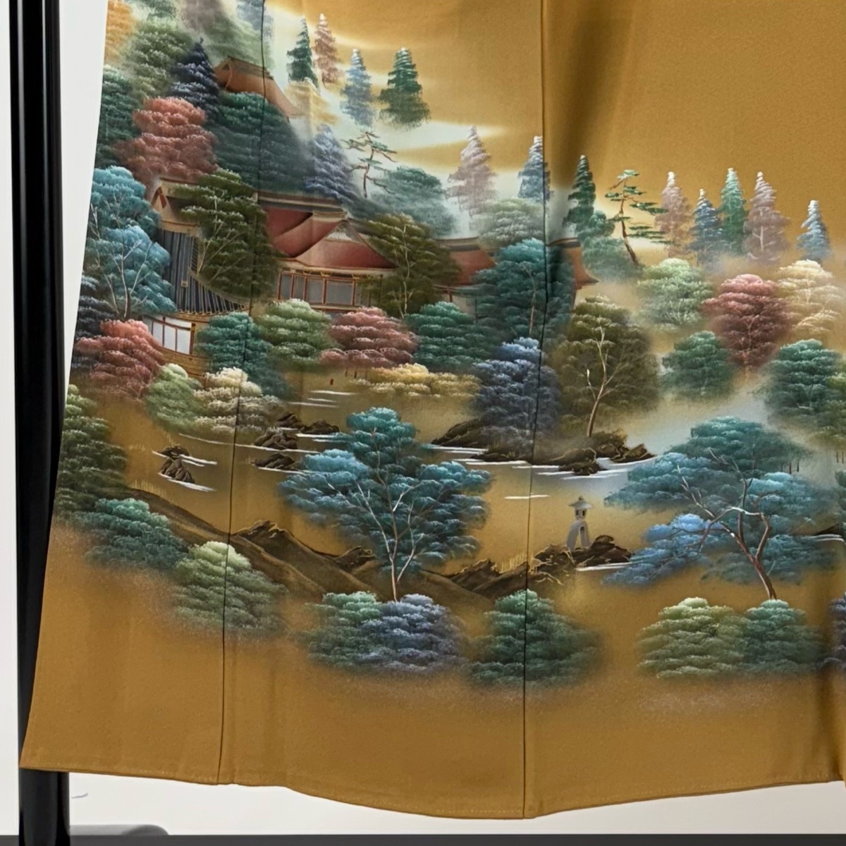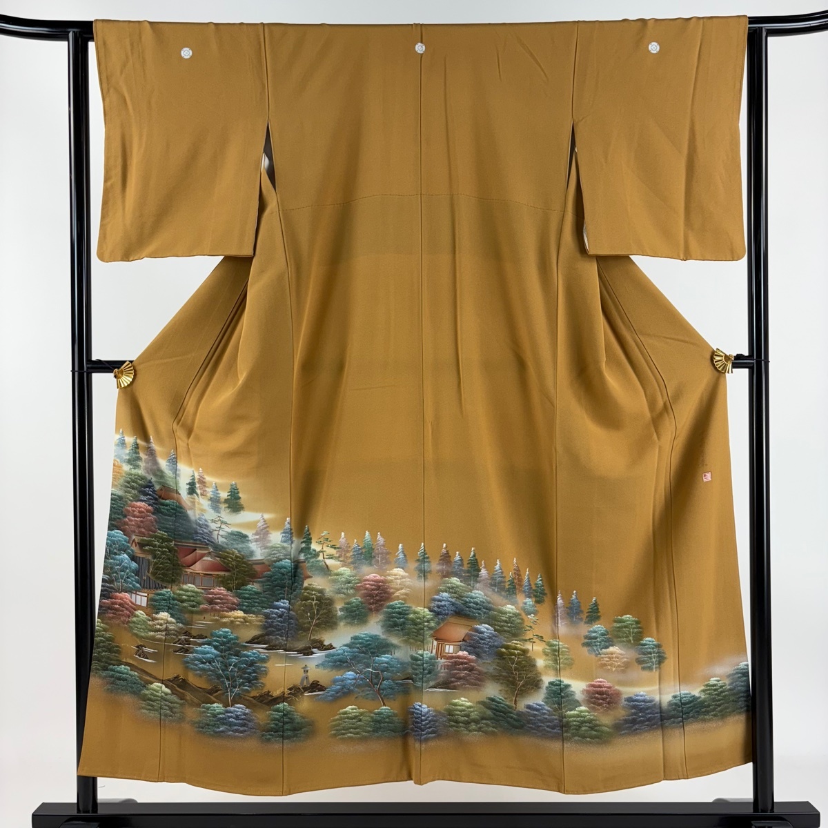 | 色留袖 秀品 落款 風景 樹木 金銀彩 黄土色 袷 身丈152 裄丈62 S 正絹 【中古】 |