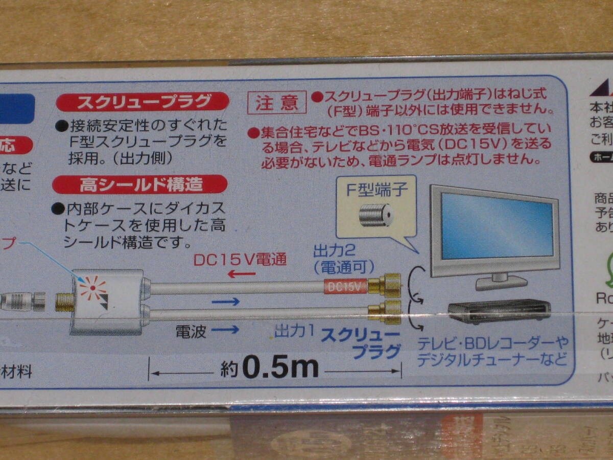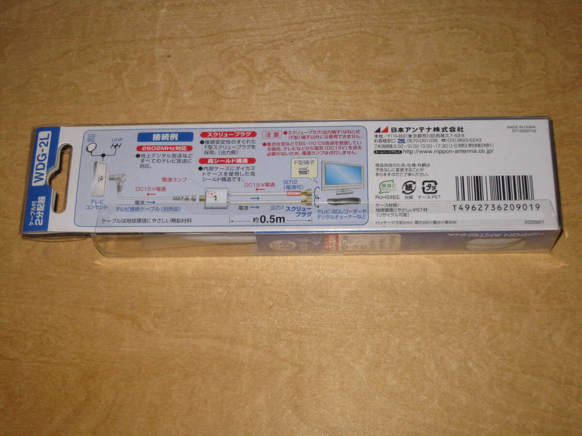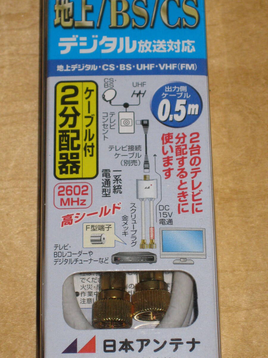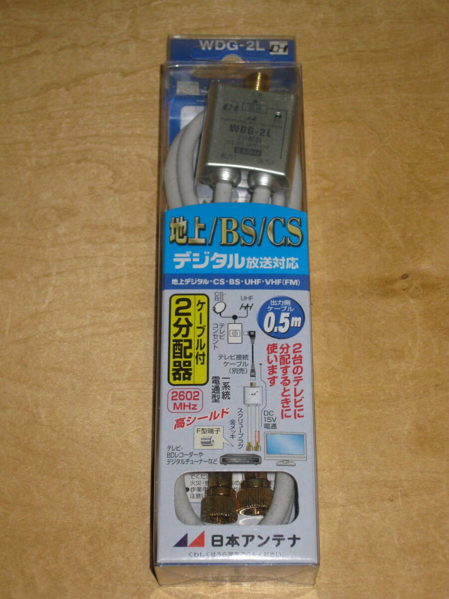 日本アンテナ 地上デジタル CS BS UHF VHF(FM) ケーブルテレビ 対応 0.5m ケーブル付き 2分配器 WDG-2L 送¥185~