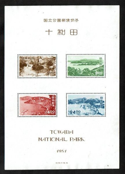 P176■【糊落ち】1951年 第1次国立公園切手 十和田 小型シート(タトウ付)■未使用・良好